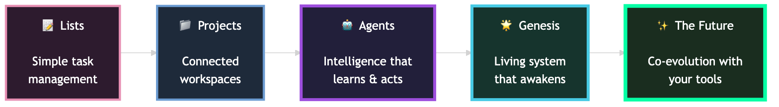 Lists became projects. Projects connected with agents. Agents learned to act and improve.