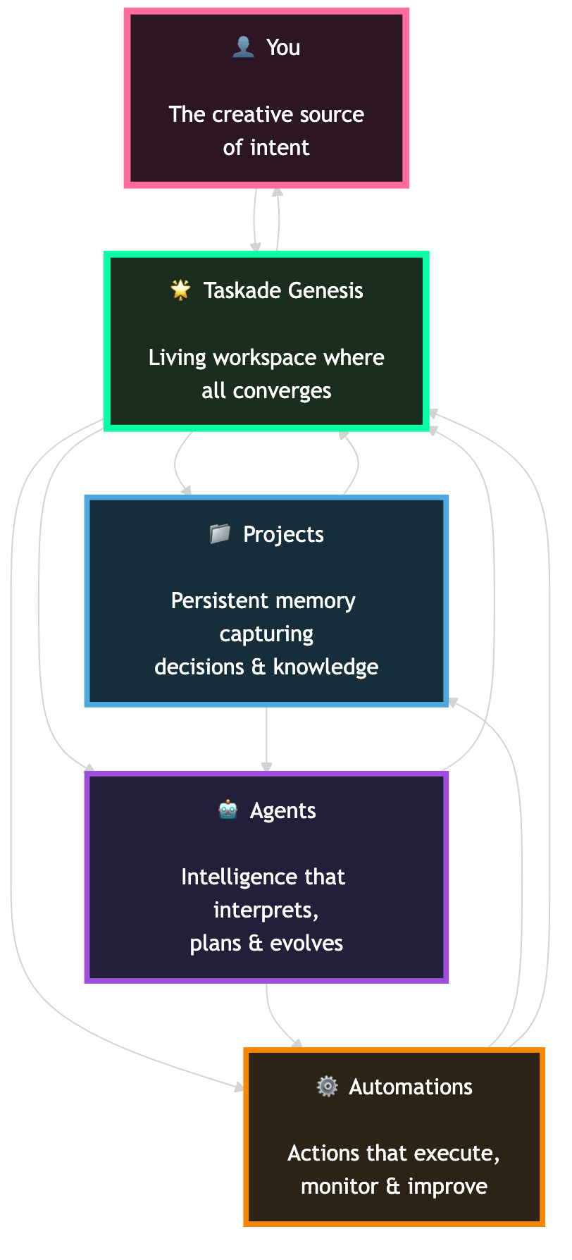 Taskade Genesis is built as a layered system of awareness.