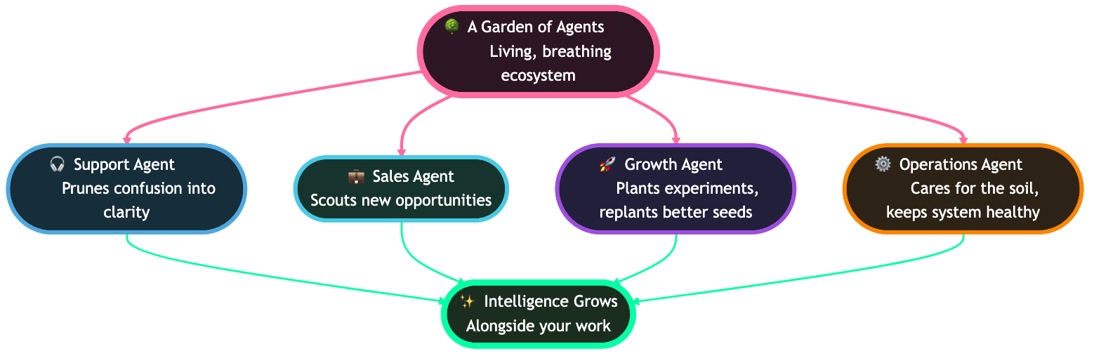 - The Operations Agent cares for the soil, keeping the system healthy.