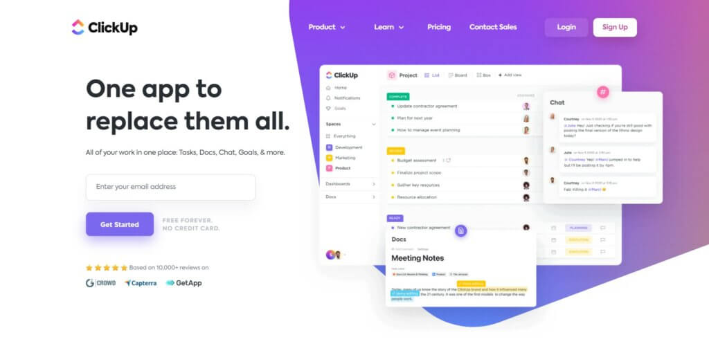 ClickUp is a versatile project management platform, founded in 2017, that aims to be an all-in-one solution for task and workflow management. With customizable views like lists, boards, calendars, and more, it offers powerful tools to organize teamwork and increase productivity. One of ClickUp's strengths is its intuitive interface and flexibility to support many different collaboration styles. It has quickly gained popularity for its robust features accessible even in low-cost plans.