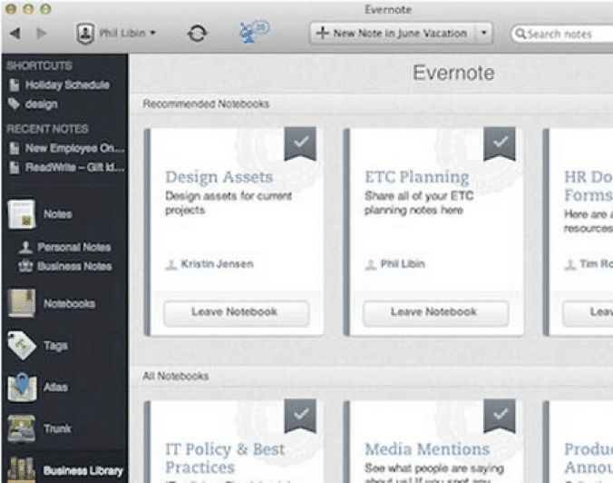 Evernote Windows interface (2014). Image source: Lifewire(19)