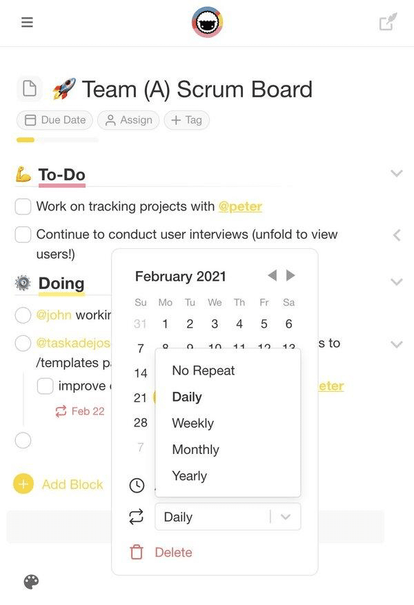 Automate your team’s workflow by setting reminders for recurring tasks and activities like meetings, feedback sessions, sprint retrospectives, and more.