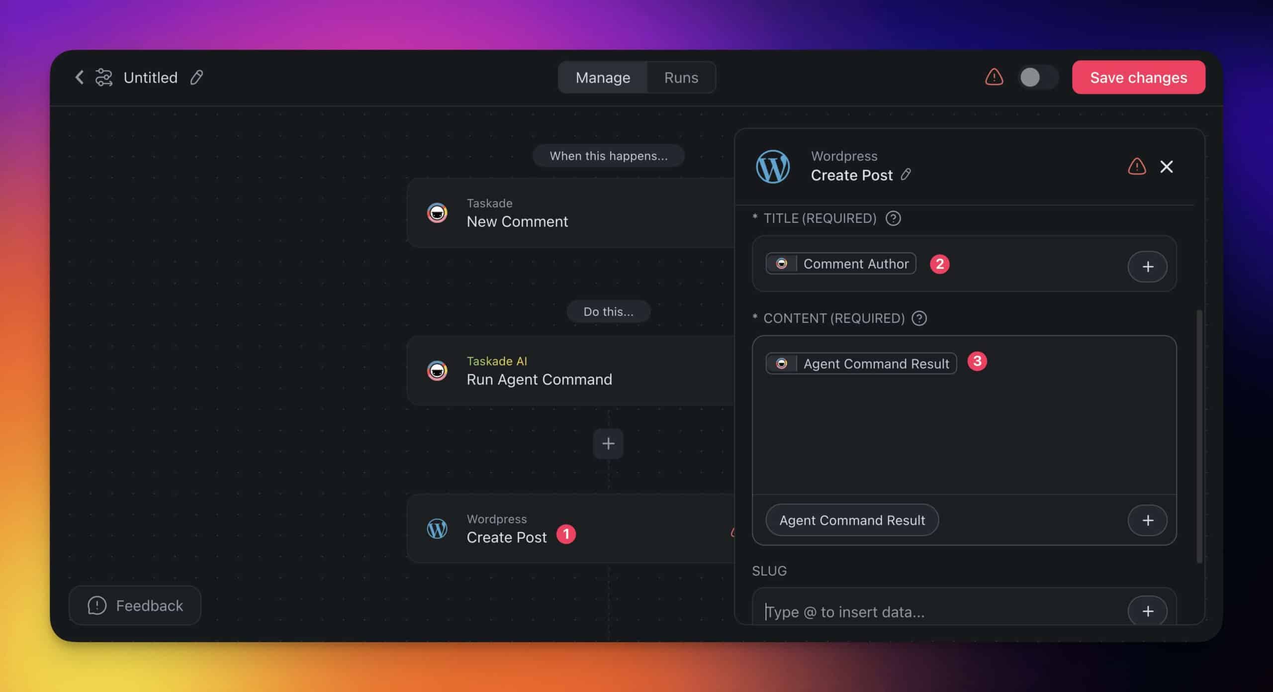 Let’s create an automation that will allow the ✍️ Copywriter agent to not only draft all new changelogs into newsletters but also convert them into a blog post inside WordPress.