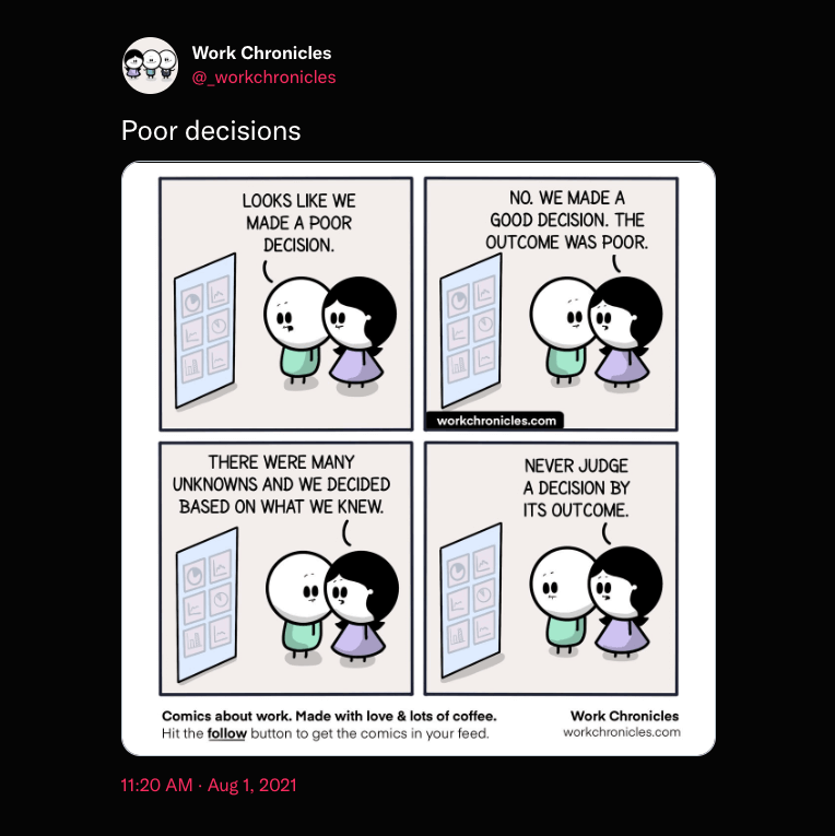 “The link between willpower and decision making works both ways: Decision making depletes your willpower, and once your willpower is depleted, you’re less able to make decisions. If your work requires you to make hard decisions all day long, at some point you’re going to be depleted and start looking for ways to conserve energy [...]”