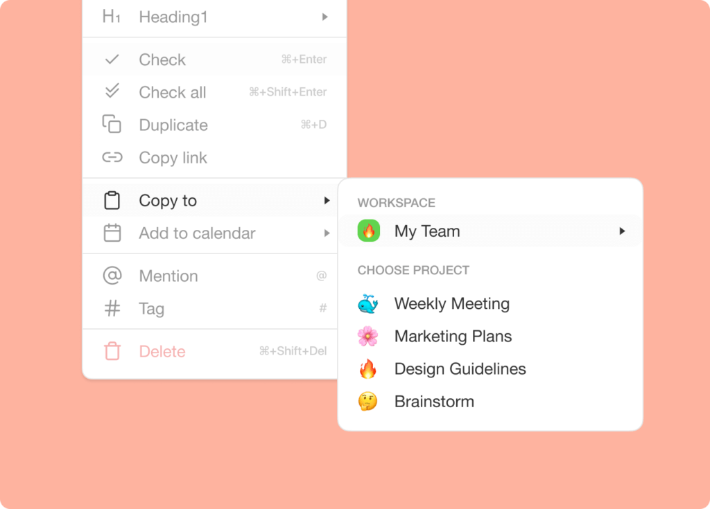 You can now copy tasks and blocks to other projects! Simply open the more menu to copy items to projects in any workspace or subspace.