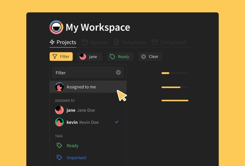 It's now faster and simpler to filter assignees and tags in your workspace.
