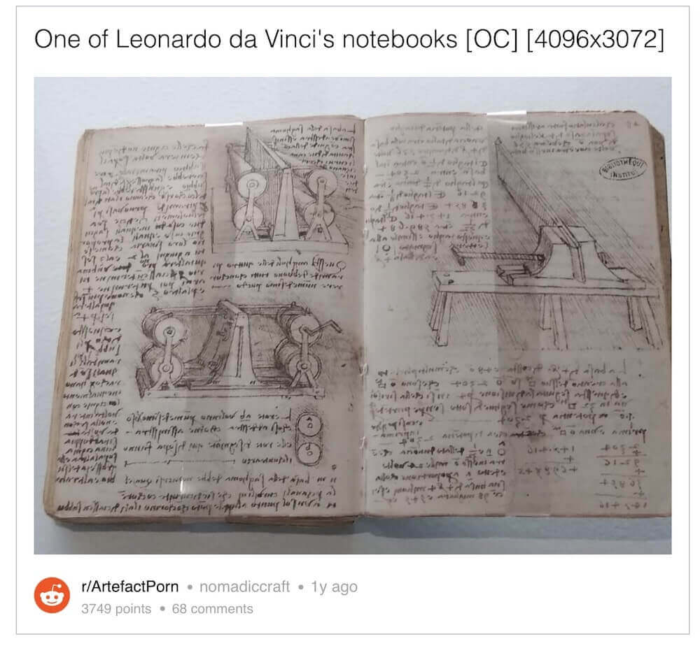 When we’re on the subject of note-taking, many of history's greatest minds took detailed notes of their intellectual pursuits. Leonardo DaVinci would record scientific observations and detailed sketches of his paintings and machinery design.