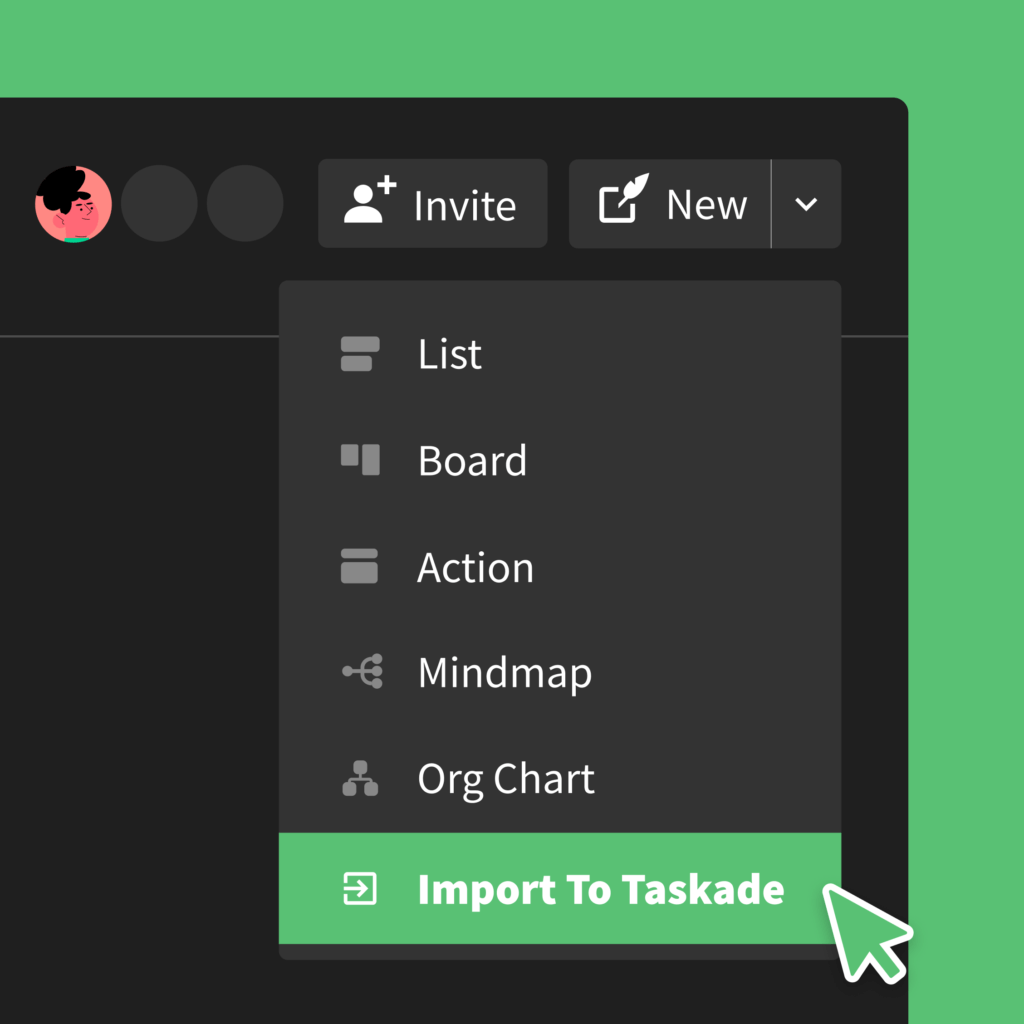 You can now import into Taskade, startingĀ withĀ Trello. Simply head to your workspace dashboard and select the menu next toĀ New.Ā