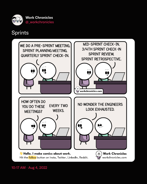 Buuut… you can’t justify bi-weekly, 2-hour-long status updates. That’s pure evil. 🤯