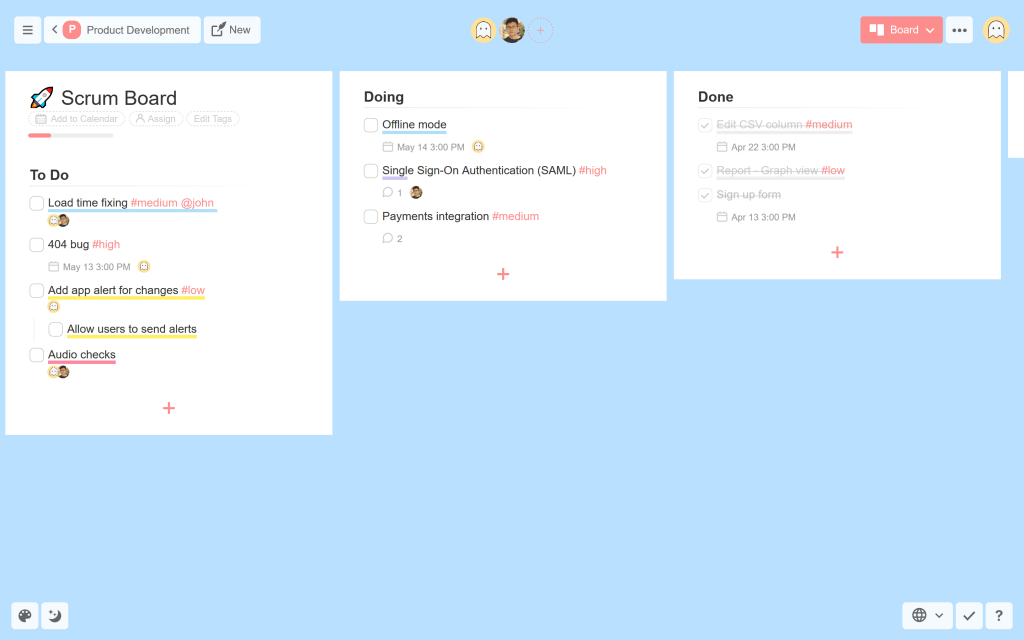 If you're not sure where to start, go ahead and grab the Scrum Board template you can import directly into your Taskade workspace. It'll help you organize your thoughts into beautiful containers, each fully customizable according to your preference.