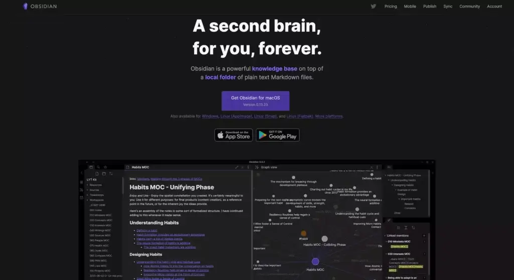 Obsidian is a note-taking software that works as a second-brain application for knowledge management. It's ability to create a web of interconnected notes makes it one of the best note-taking apps out there today.