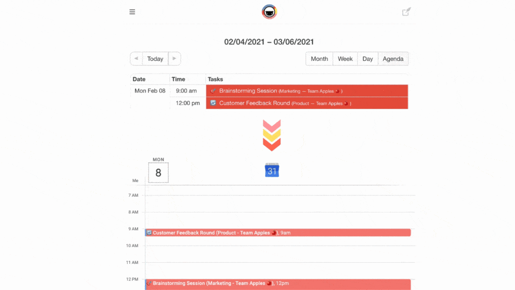 🐑 Taskade Tip #2: Use the Taskade calendar to schedule meetings and sync events with Apple, Google, and Outlook calendars.