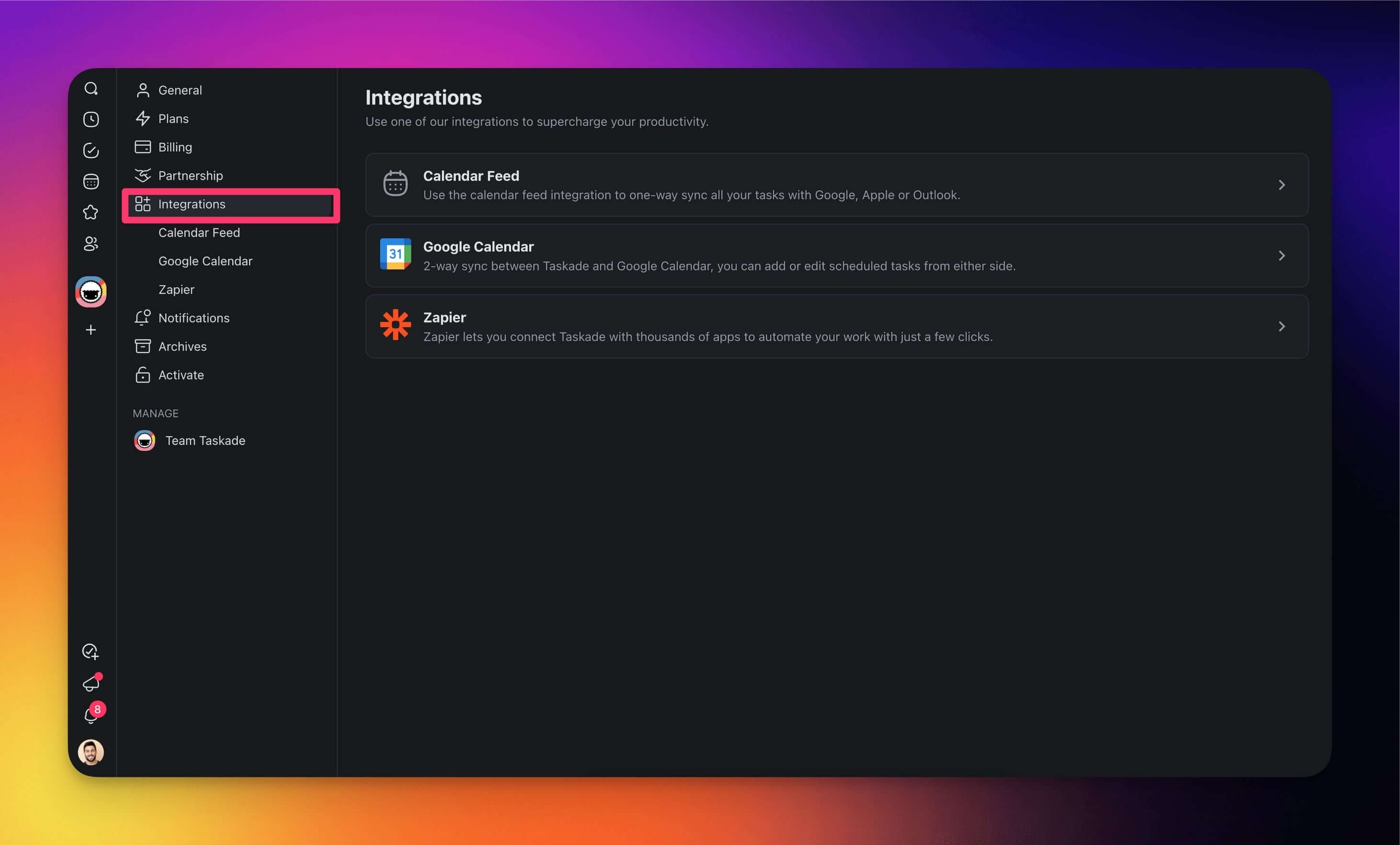 - Google Calendar: Enable two-way calendar sync with Google Calendar.