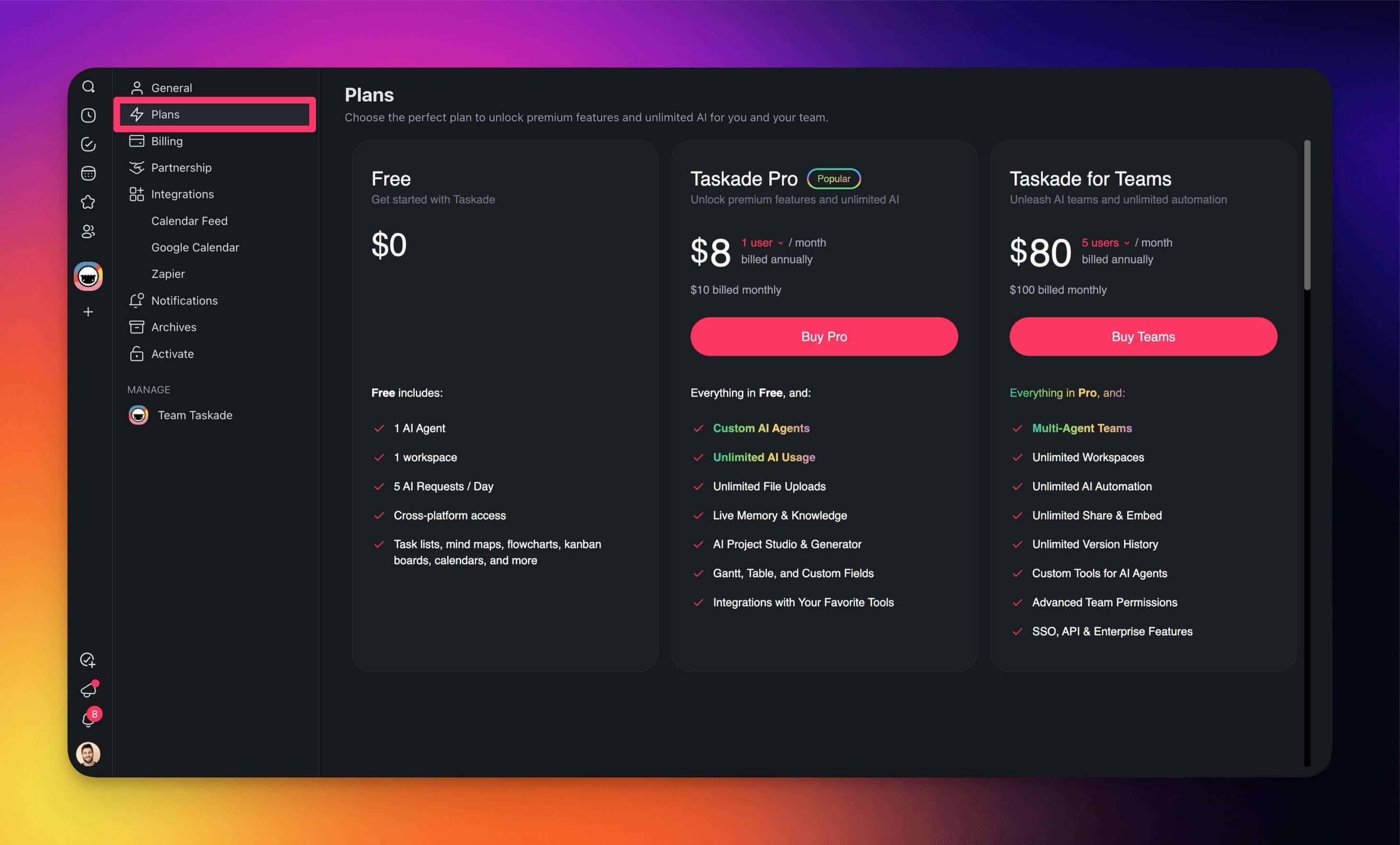๐ก Note: Visit Taskade's Pricing page to learn more.