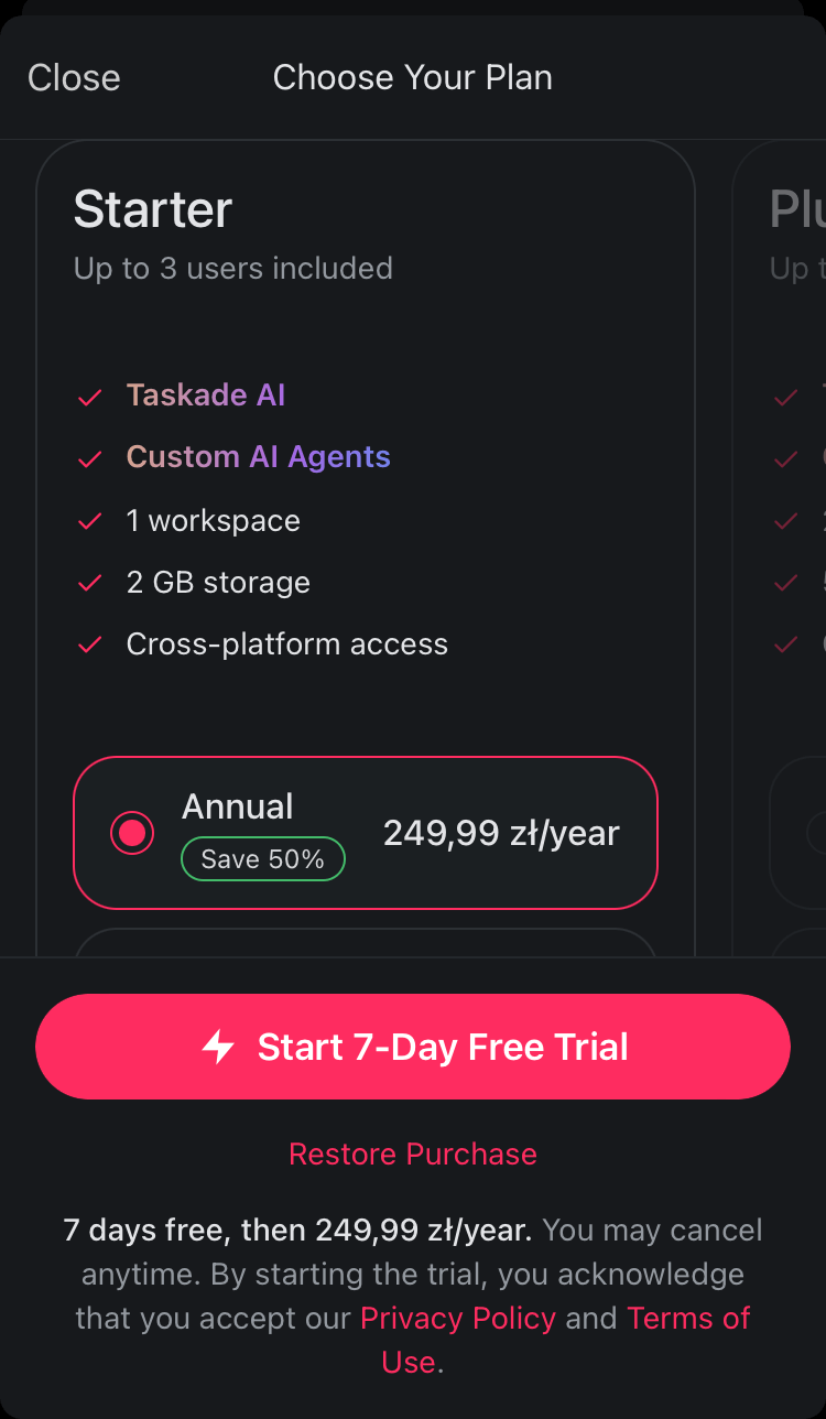 - Tap ⚡️ Start 7-Day Free Trial to subscribe.