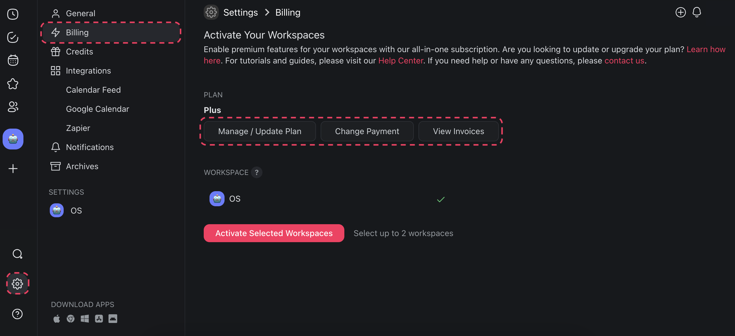 Navigate to ⚙️ Settings ➡ 💳 Billing.