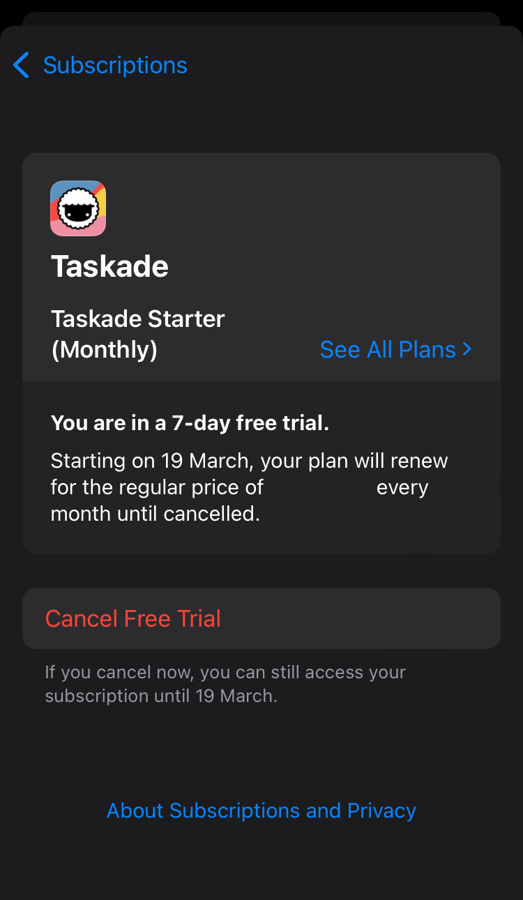 - Tap Cancel Subscription or Cancel Free Trial to unsubscribe.
