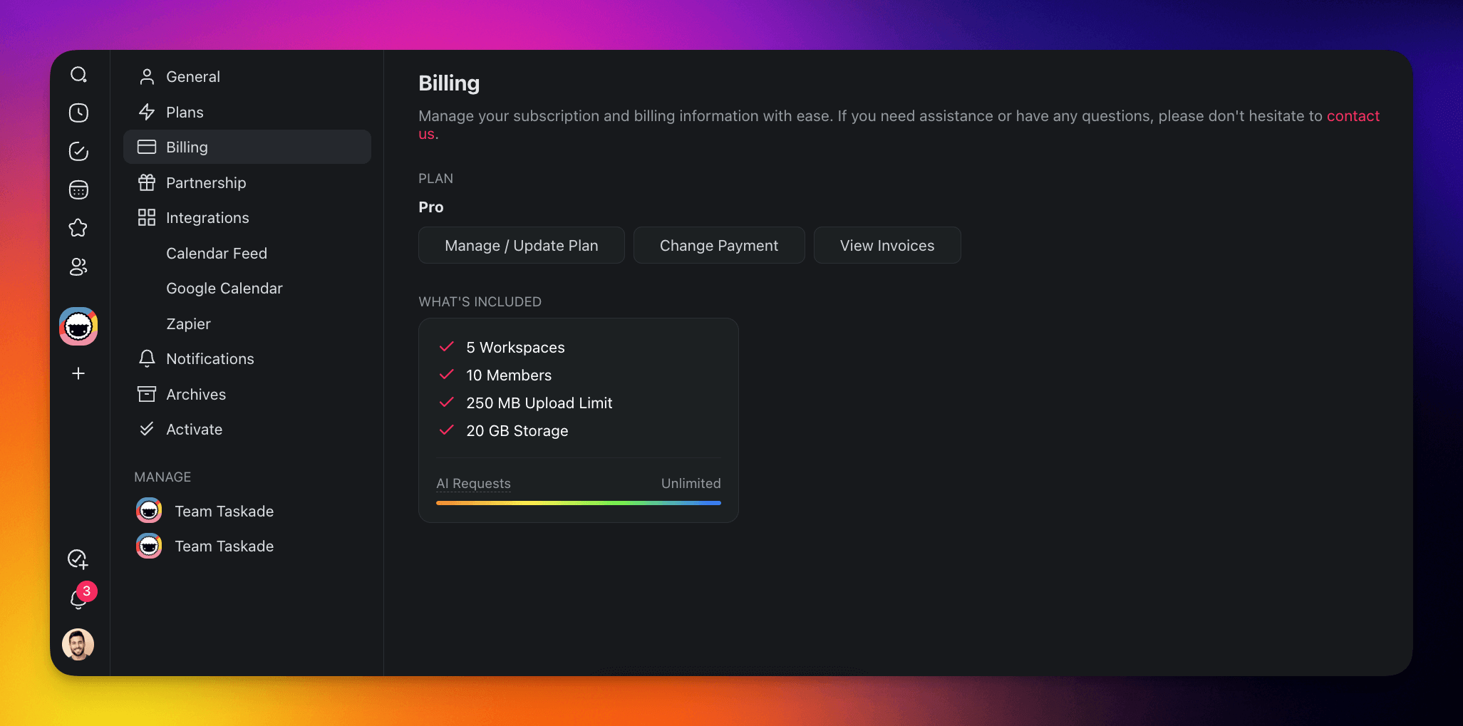 Choose Settings and select the ๐ณ Billing tab from the list on the left.