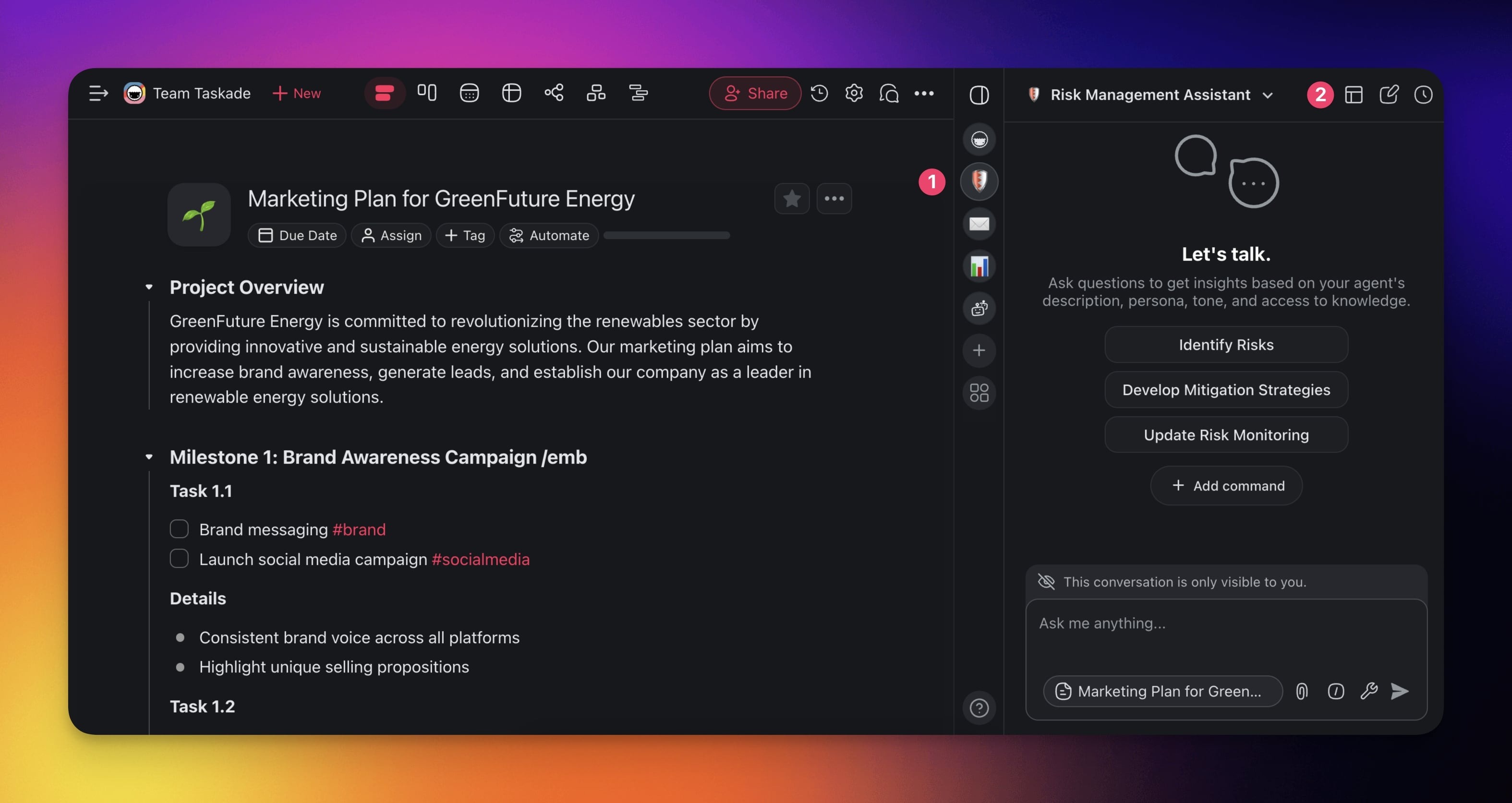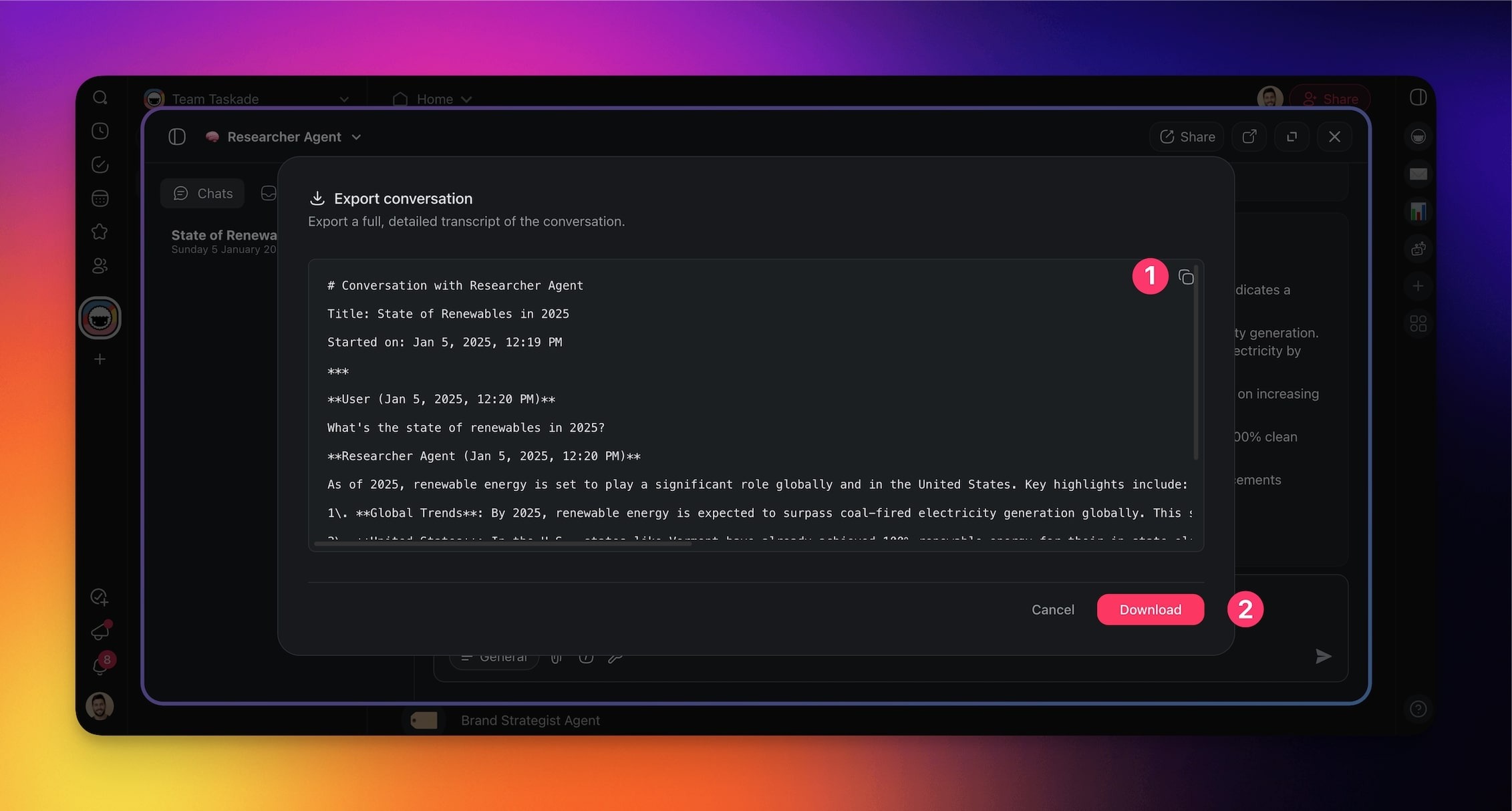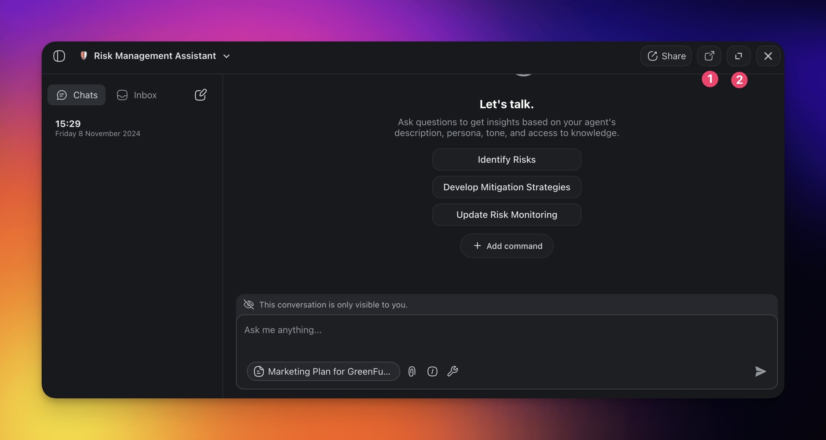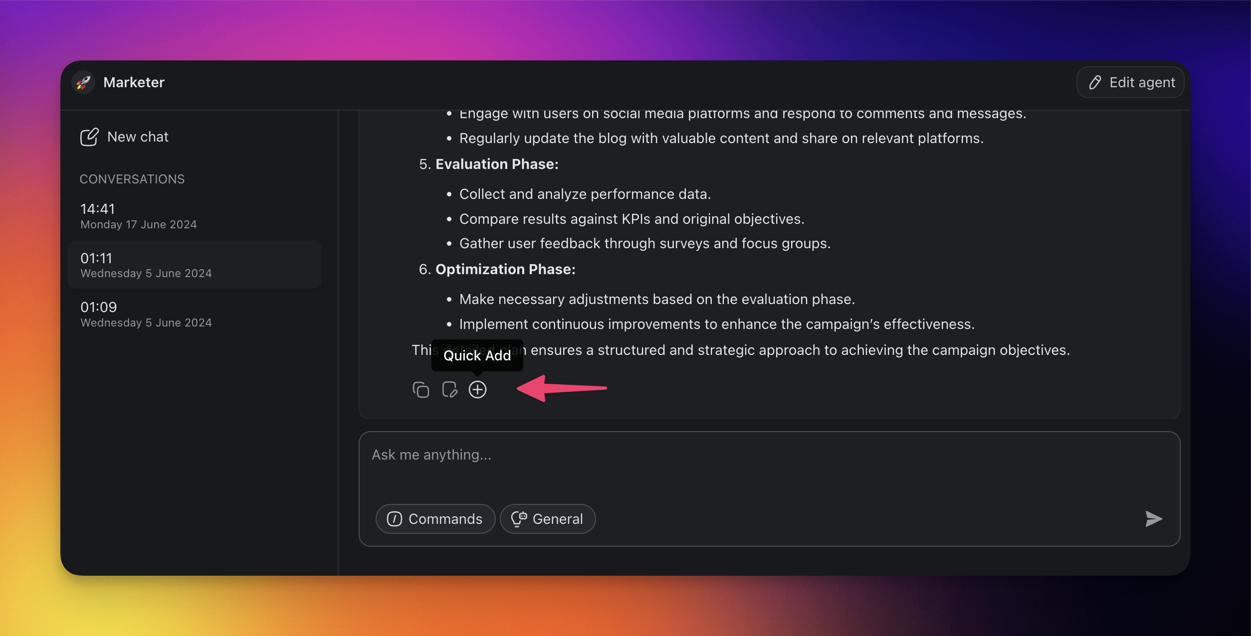 - Focused conversations: Keep multiple chat threads with the same AI agent neatly organized, each tailored for specific topics or projects.