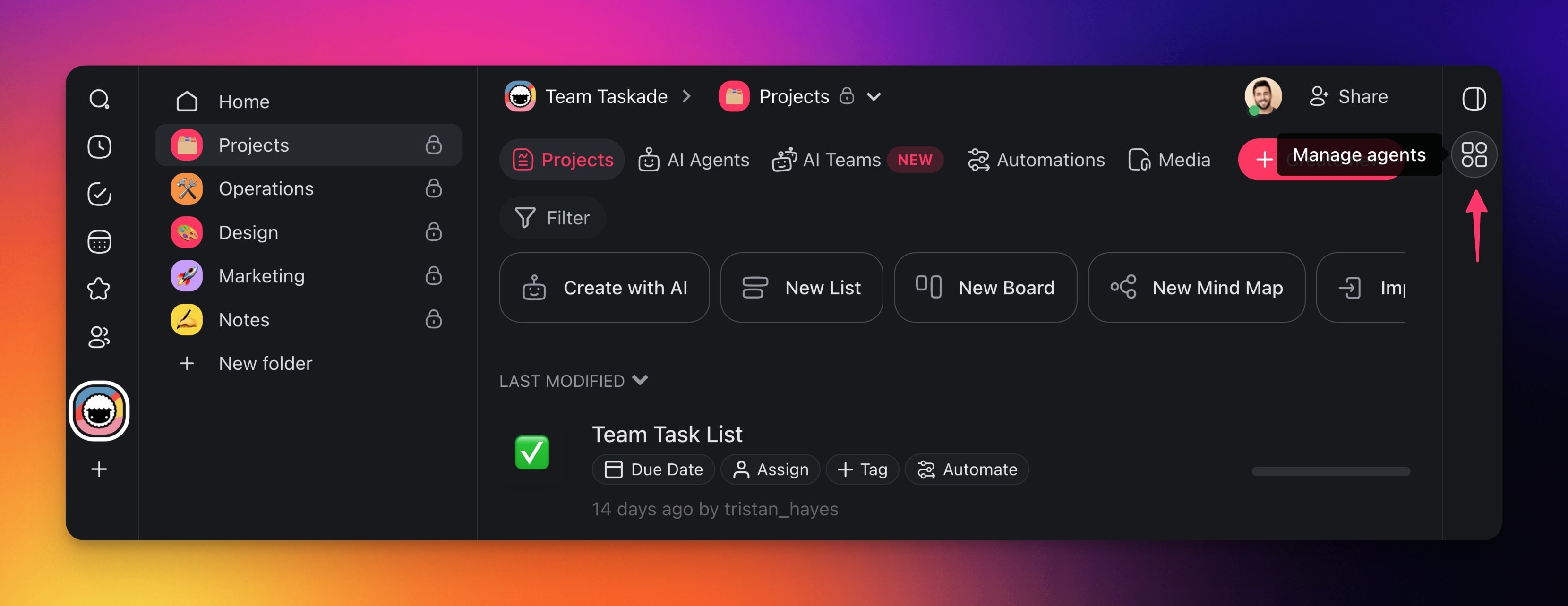 Workspace DNA โ Every Taskade workspace is powered by three interconnected pillars: Memory (Projects & Databases), Intelligence (Custom AI Agents), and Execution (Automations). Together they form a continuous feedback loop that makes your workspace smarter over time.