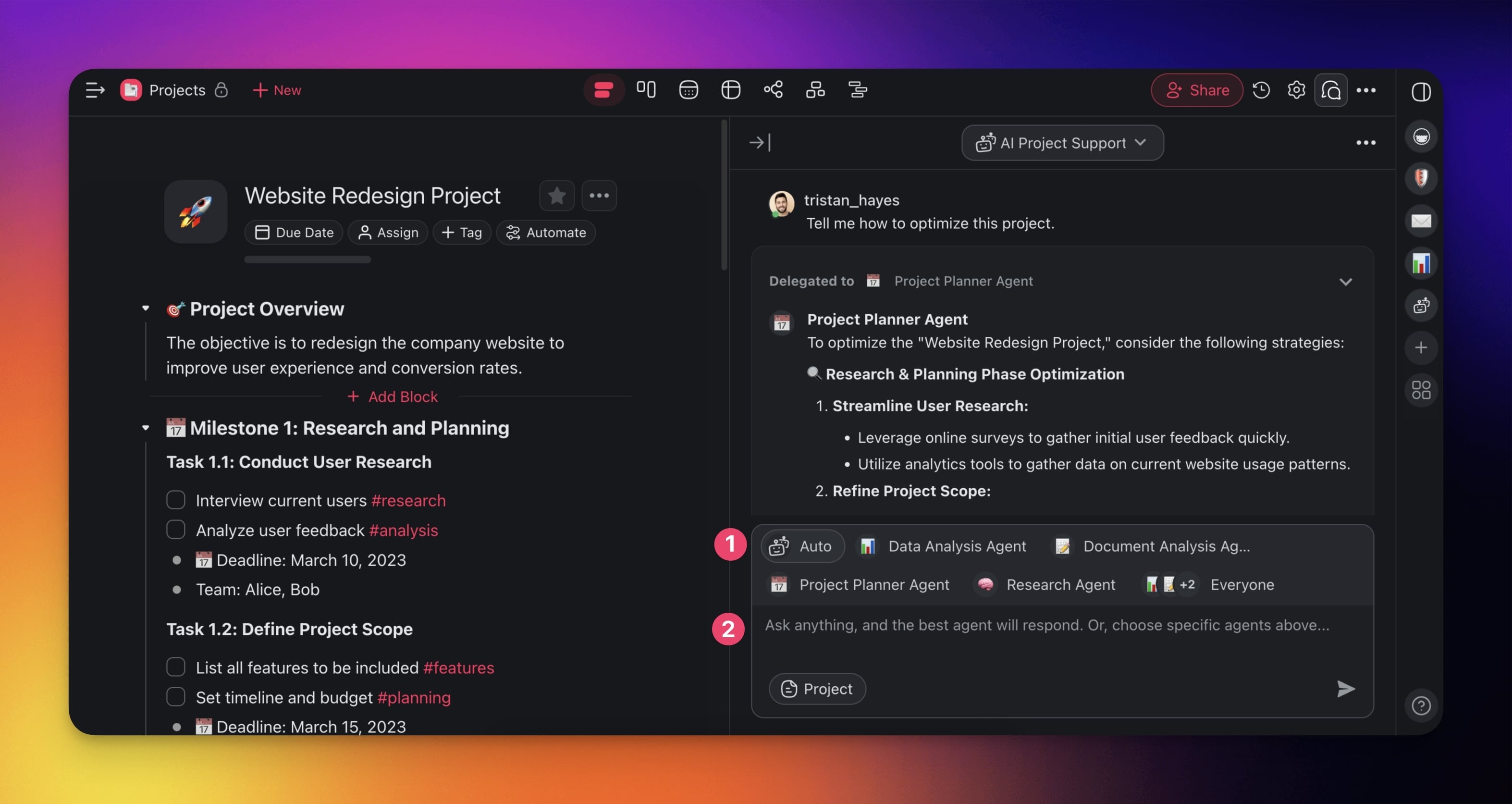 - Choose an agent you want to interact with or set to Auto and let AI decide.