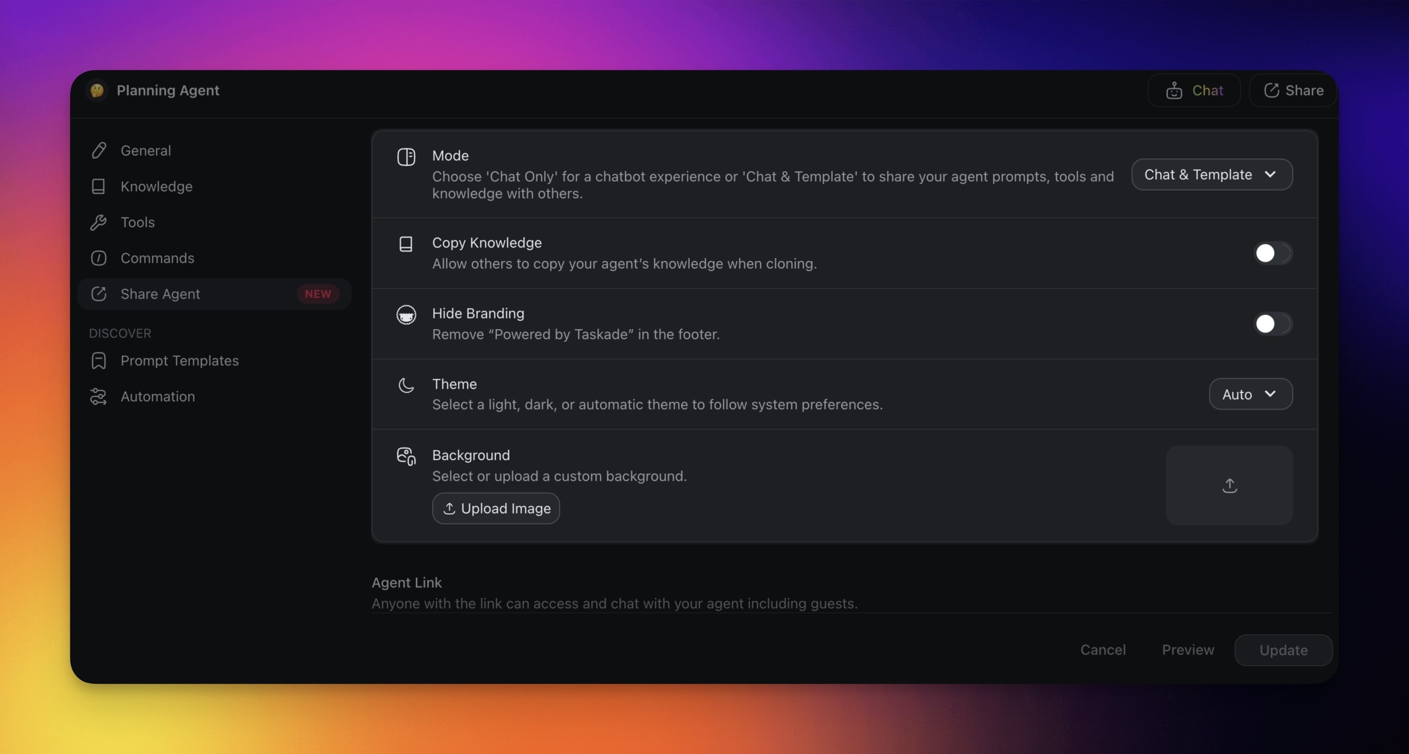 Agent Chat is a revolutionary way of interacting with AI that lets you experience the power of tailored, context-aware responses from your custom AI agents.