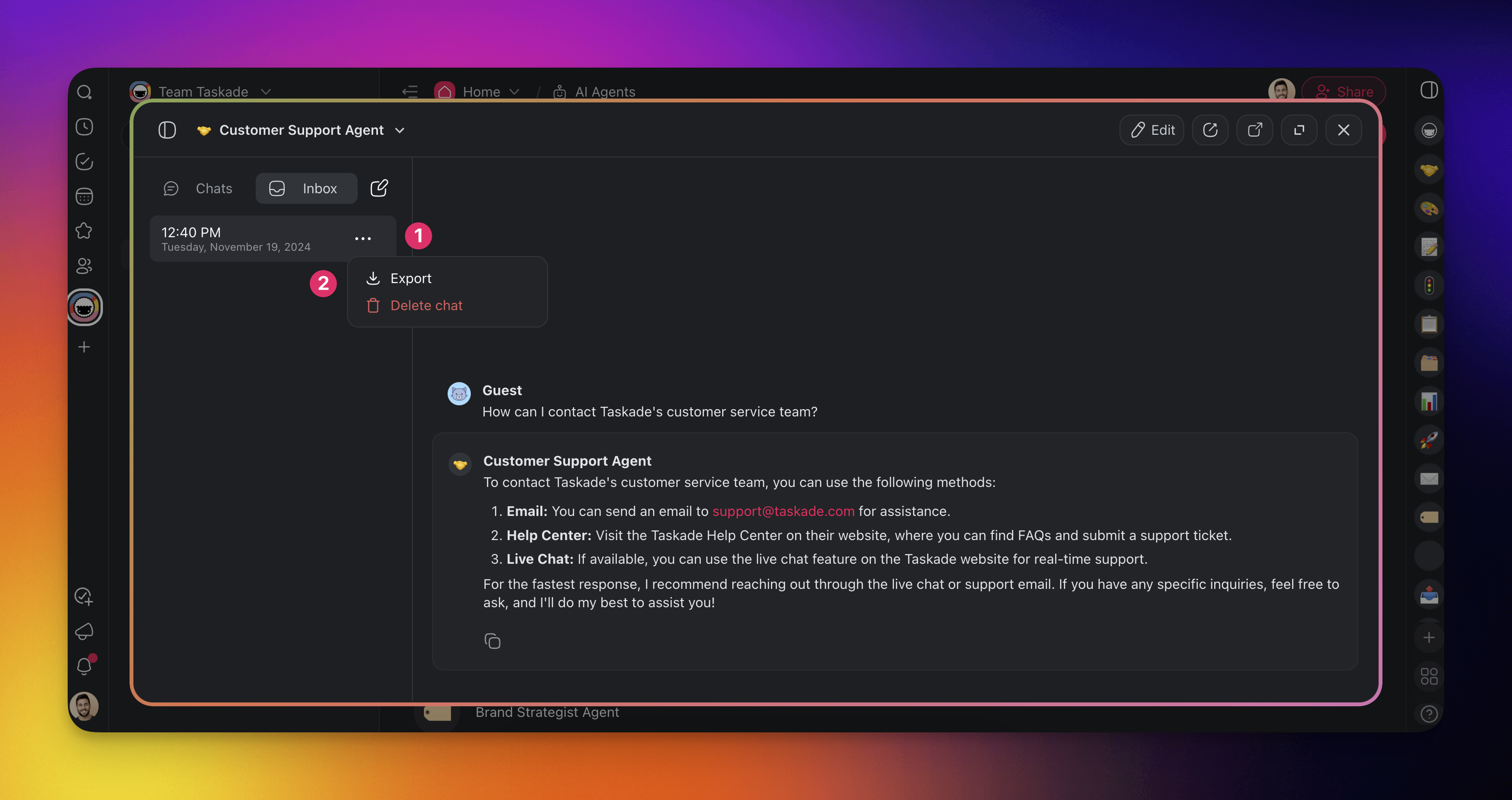 - Hide Branding: Remove Taskade branding in the agent footer.