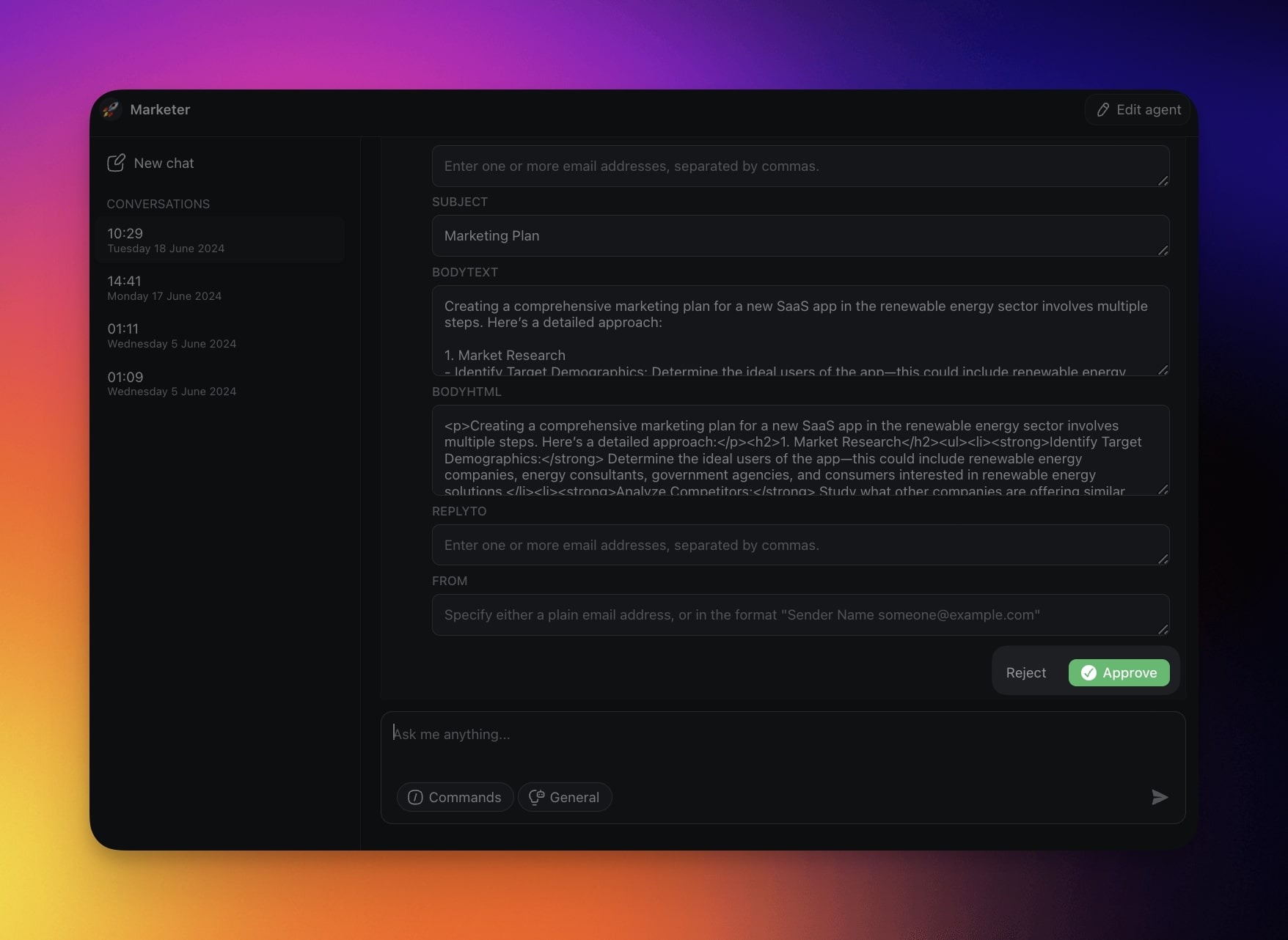 - Wait for the agent to finish and click Approve or Reject.