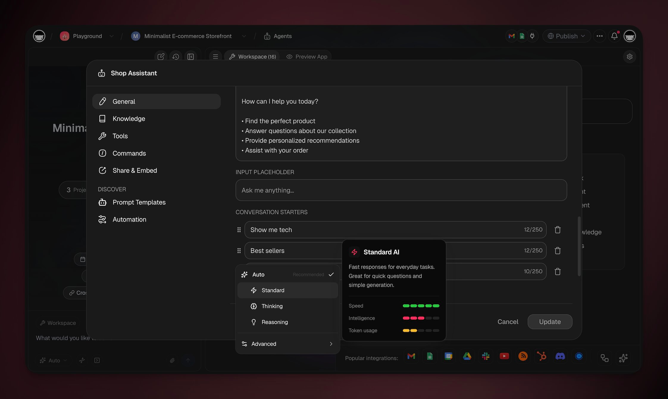 AI agents can access top models from OpenAI, Anthropic, and Google. Each model has a different balance of speed, intelligence, and token usage.