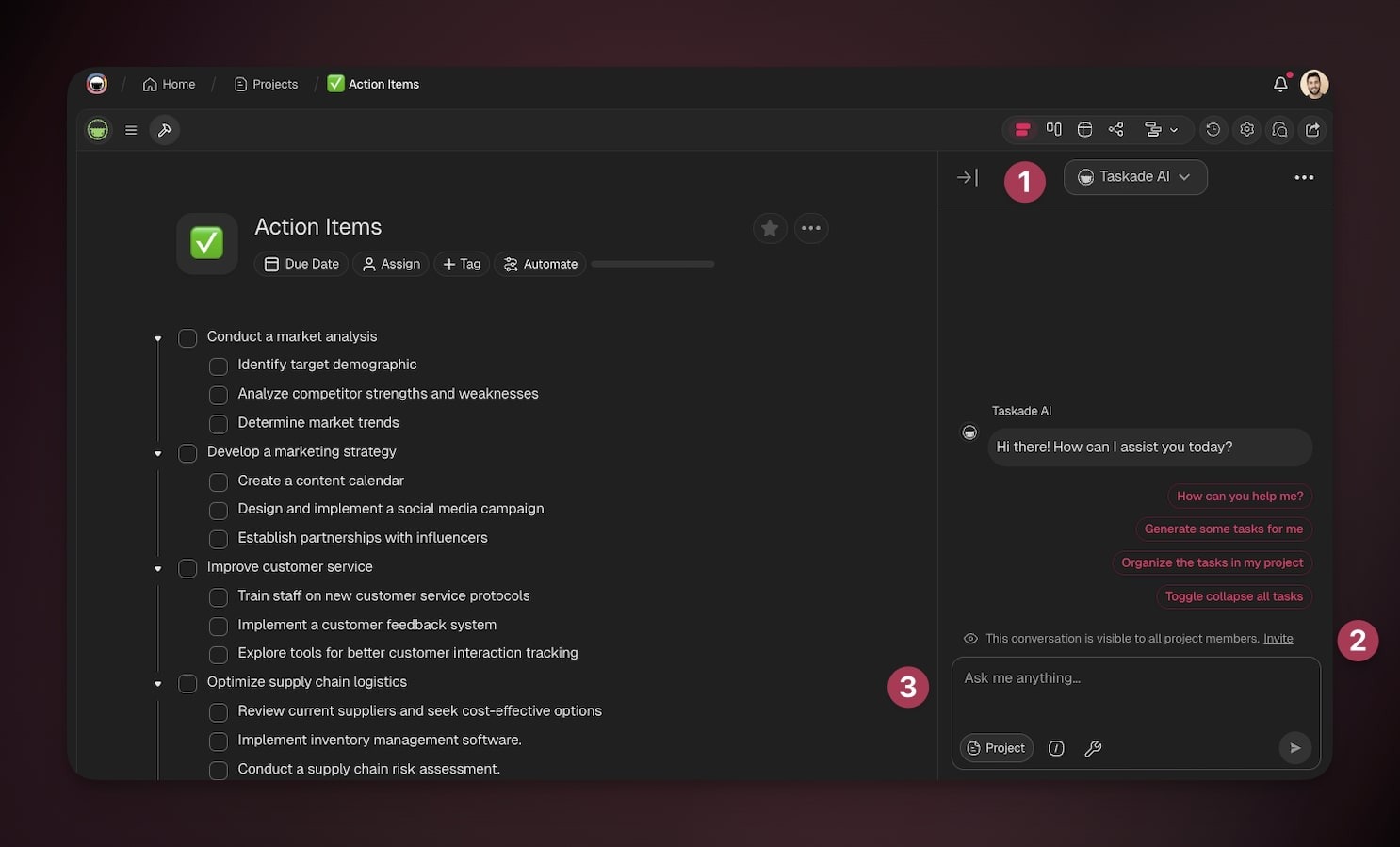 Use Taskade EVE (Taskade Assistant Agent)