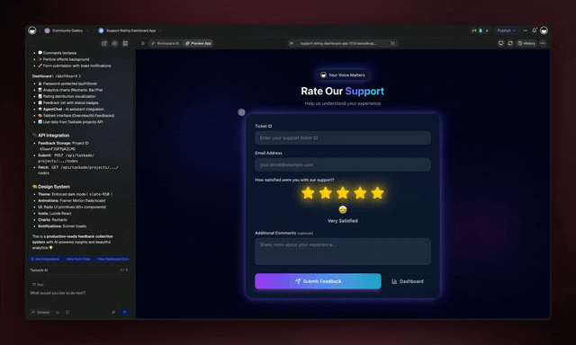 Taskade is the only vibe coding platform where your apps can think, not just display. Every Taskade Genesis app can embed custom AI agents that: