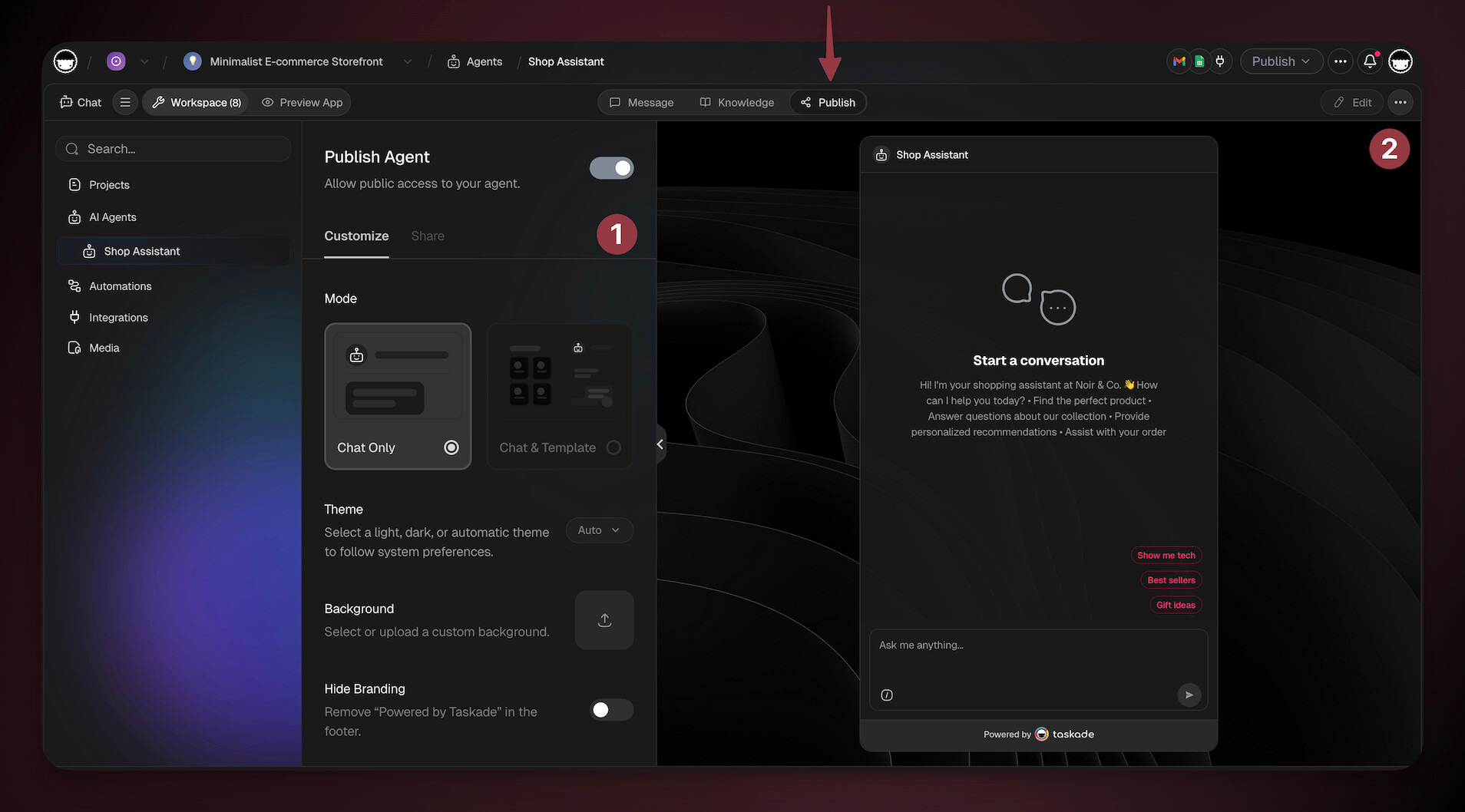 Want to embed your custom agent as a widget inside your Taskade Genesis apps. You can do this hands-free using EVE (Taskade Assistant Agent):