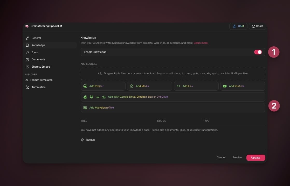 💡 Note: Visit Agent Knowledge & Data to learn more.