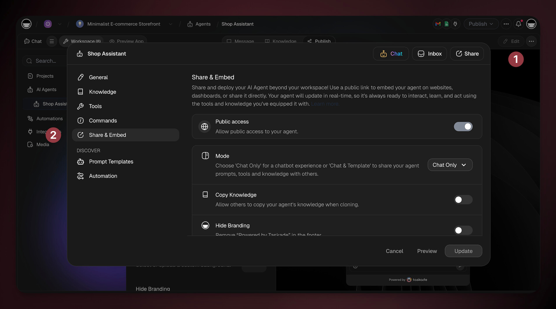 📖 Learn more: Share & Embed AI Agents