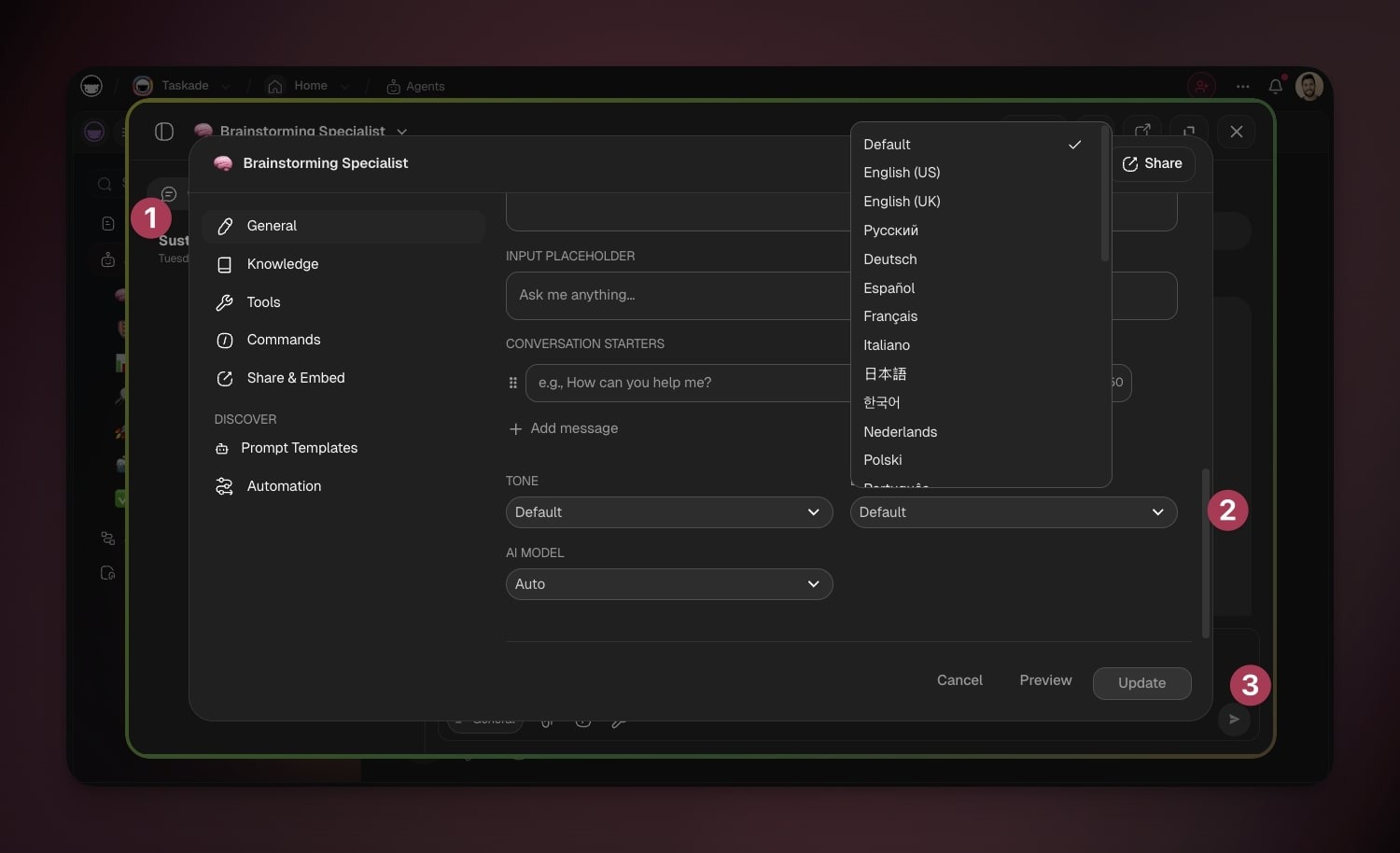 💡 Note: Custom AI Agents are part of Taskade AI. Jump here to learn more.