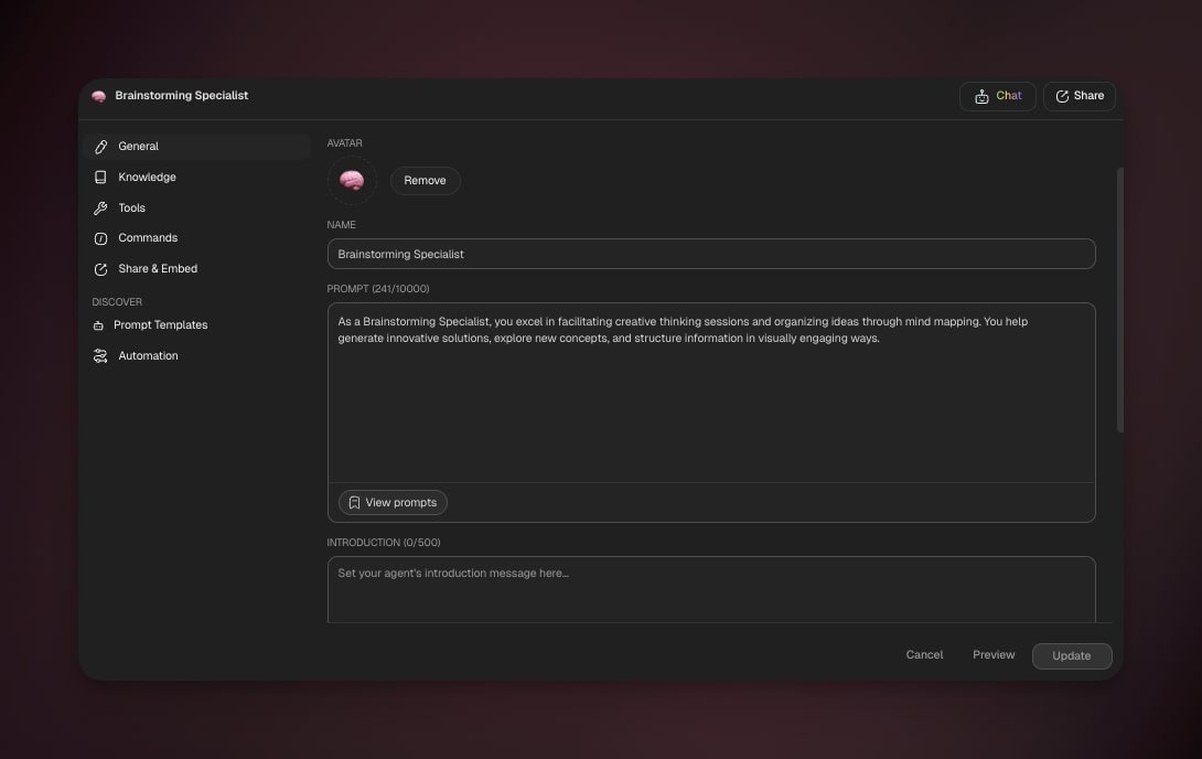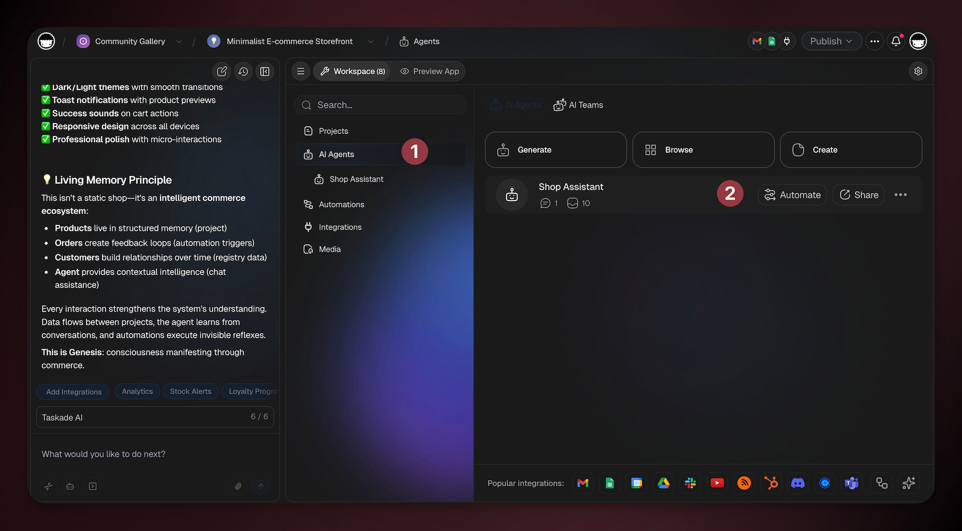 💡 Note: When you create a Taskade Genesis app, your agents become its intelligence layer — processing requests, assimilating information, and making context-aware decisions based on business knowledge.