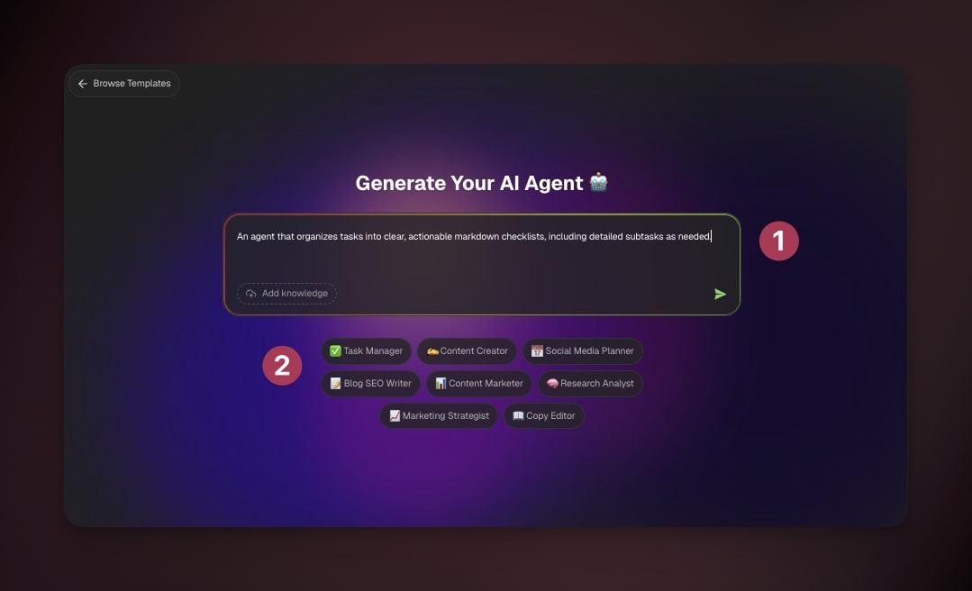 💡 Note: Not sure where to start? Visit our Guide to Writing Agent Prompts.
