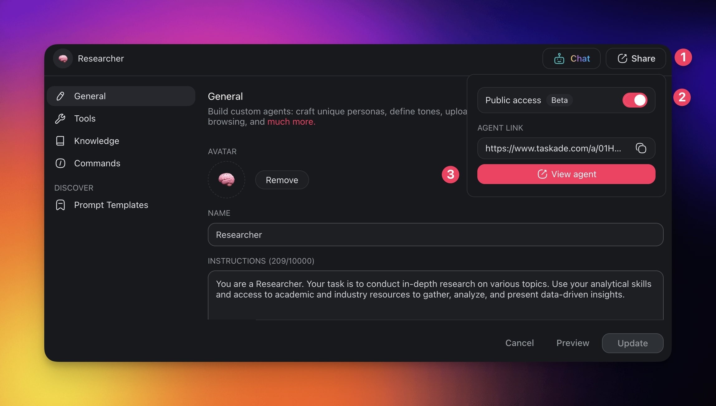 💡 Note: Visit our Custom AI Agents guide for detailed instructions.