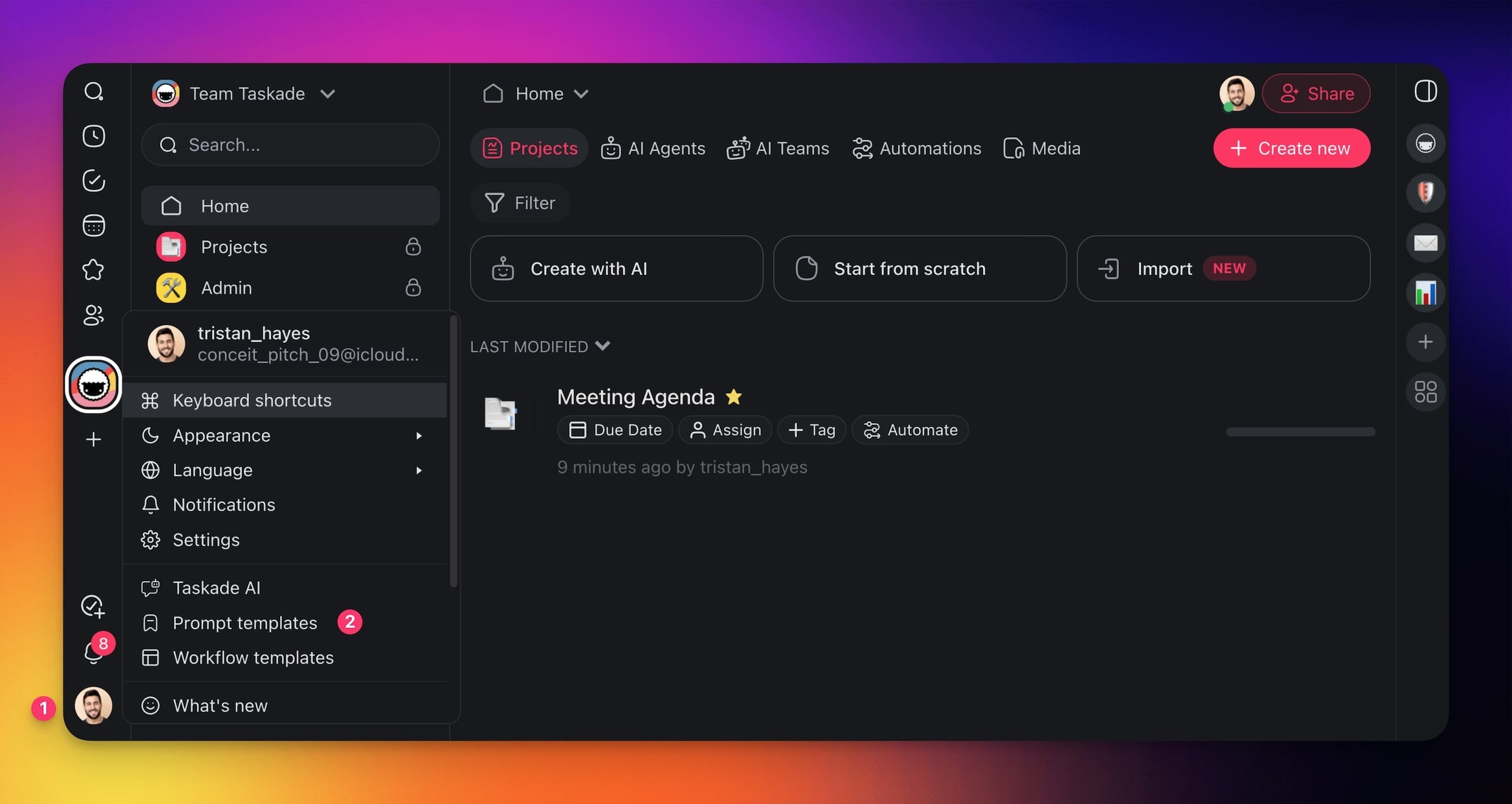 - Click your profile picture in the bottom-left corner of the Taskade app.