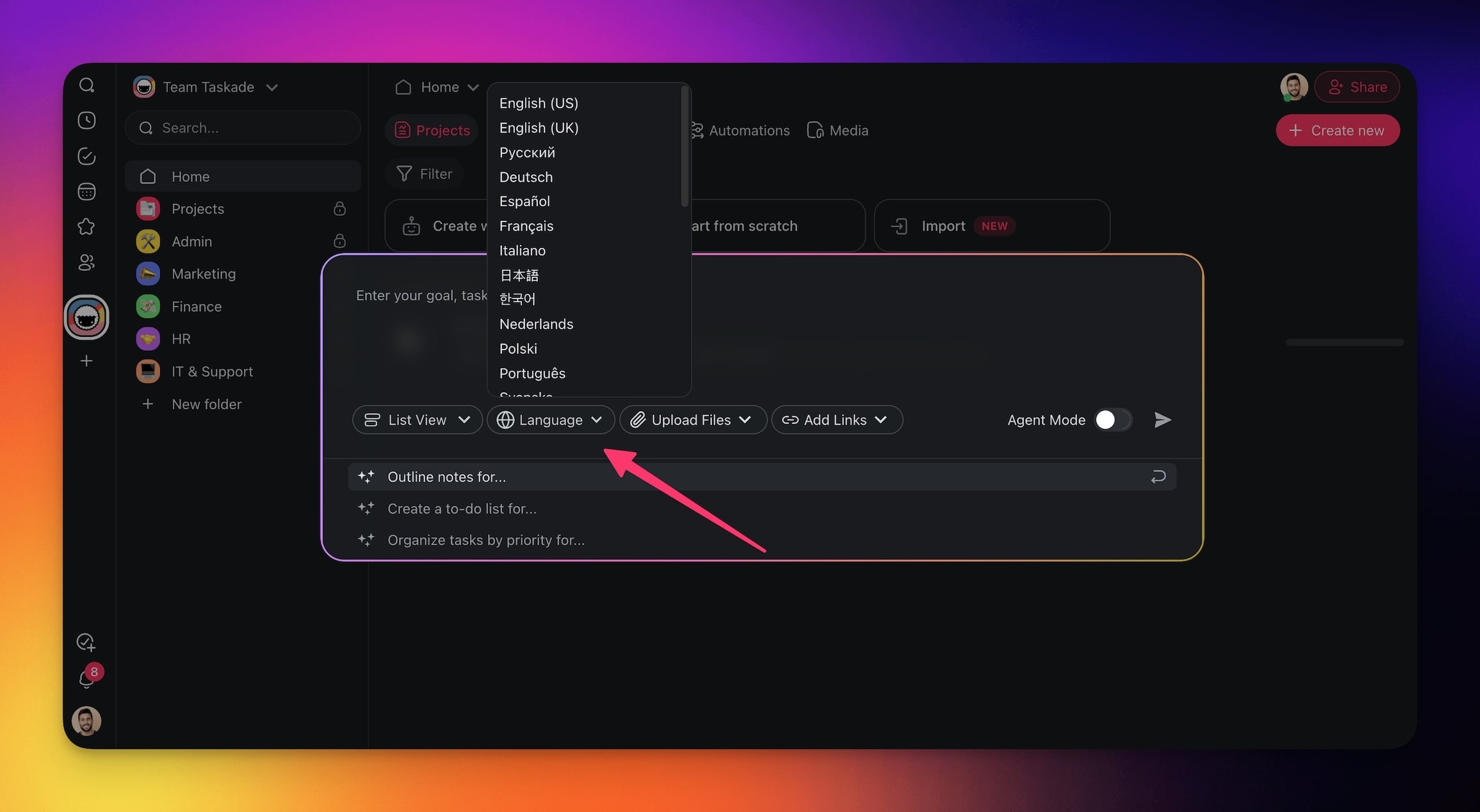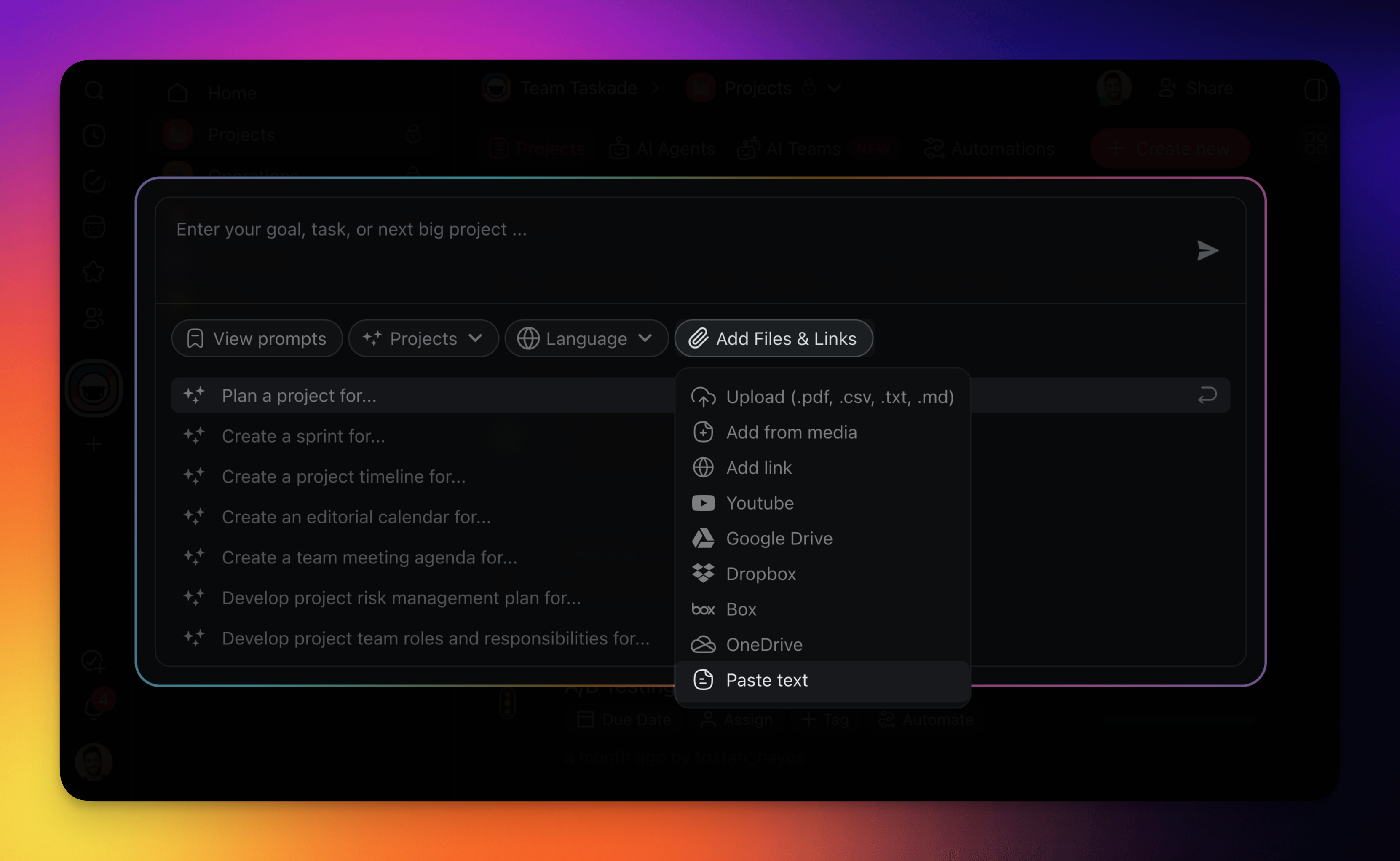 - Paste the prompt to AI Project Studio or use it with other Taskade AI features.
