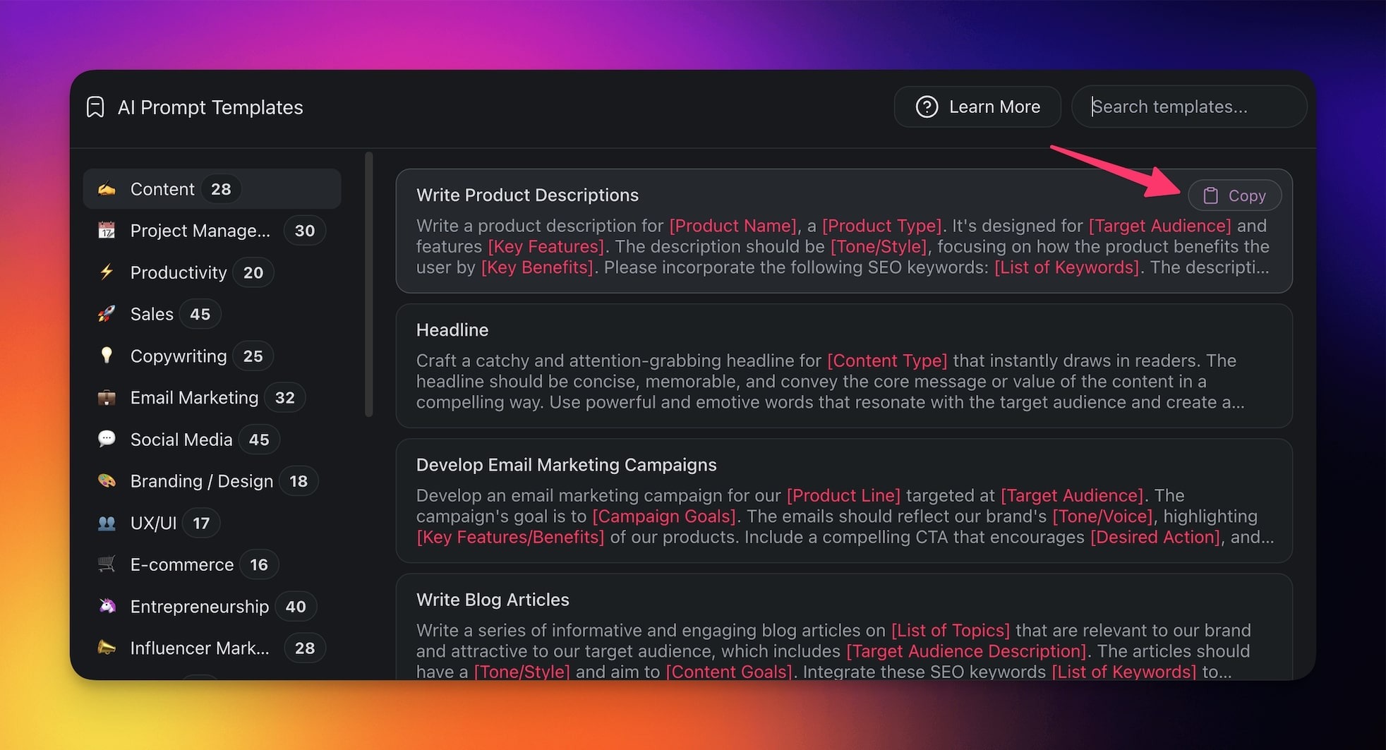 Ran out of ideas for AI Project Studio? Use one of the AI prompt templates in the app.