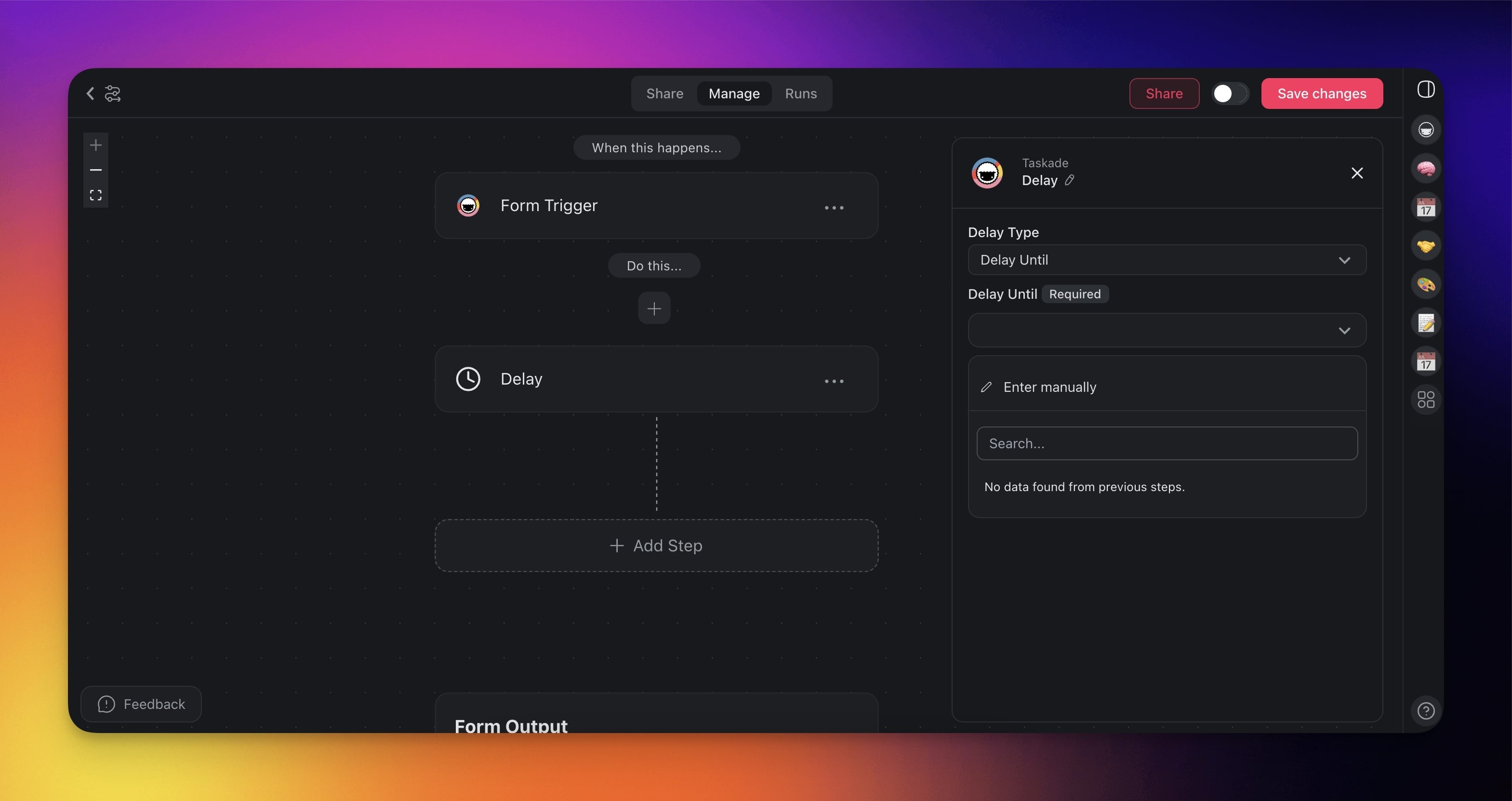 Add steps and triggers to build your automation flow.