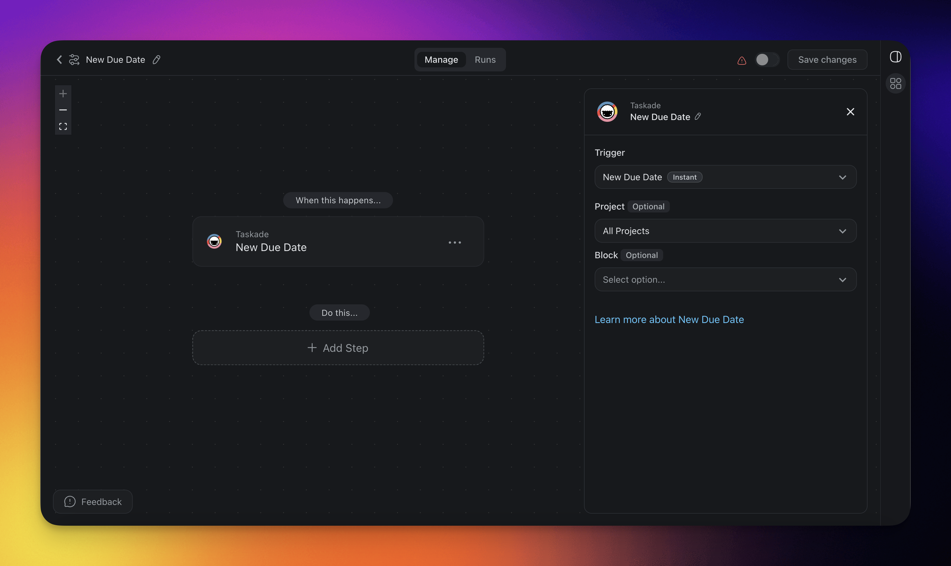 New Due Date trigger allows an automation to detect when a new due date is added to a task making it easy to initiate follow-up actions, update workflows, or trigger subsequent processes. This trigger ensures seamless transitions and timely responses within projects for greater efficiency and collaboration.