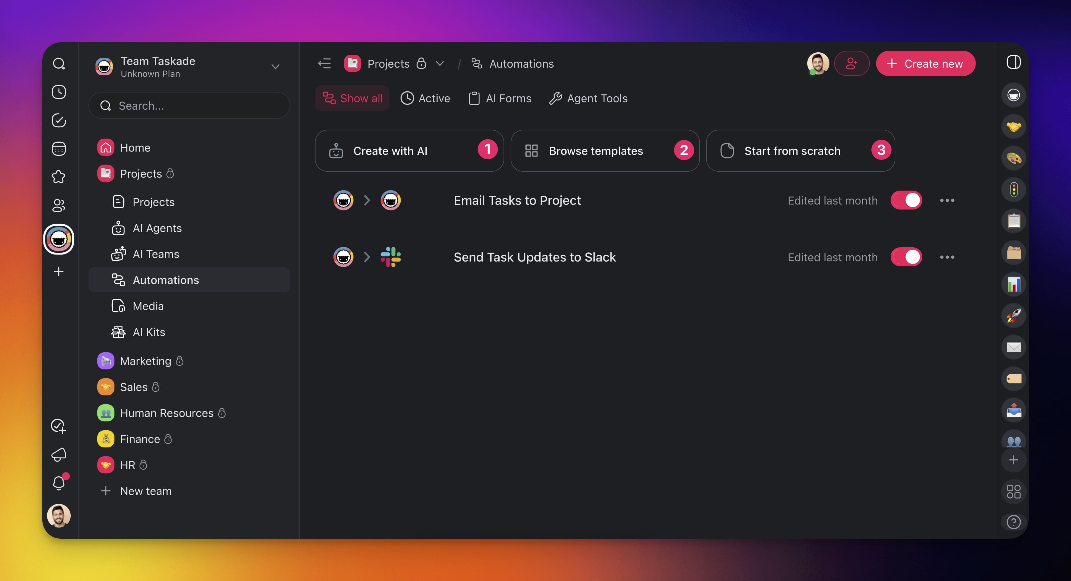 - Go to the Automations tab in your workspace or folder.