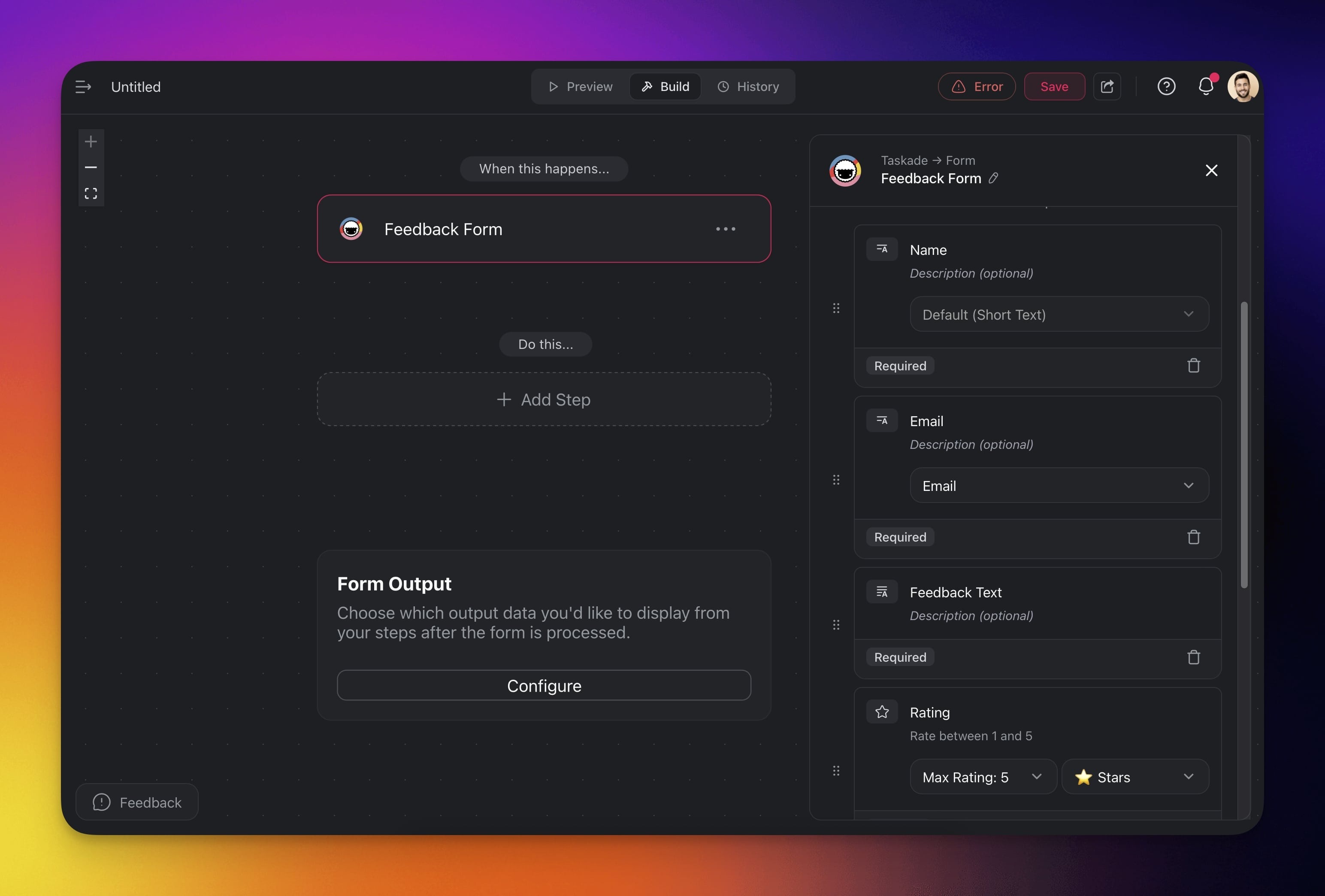 | Form Fields | Define what fields the user should provide. |