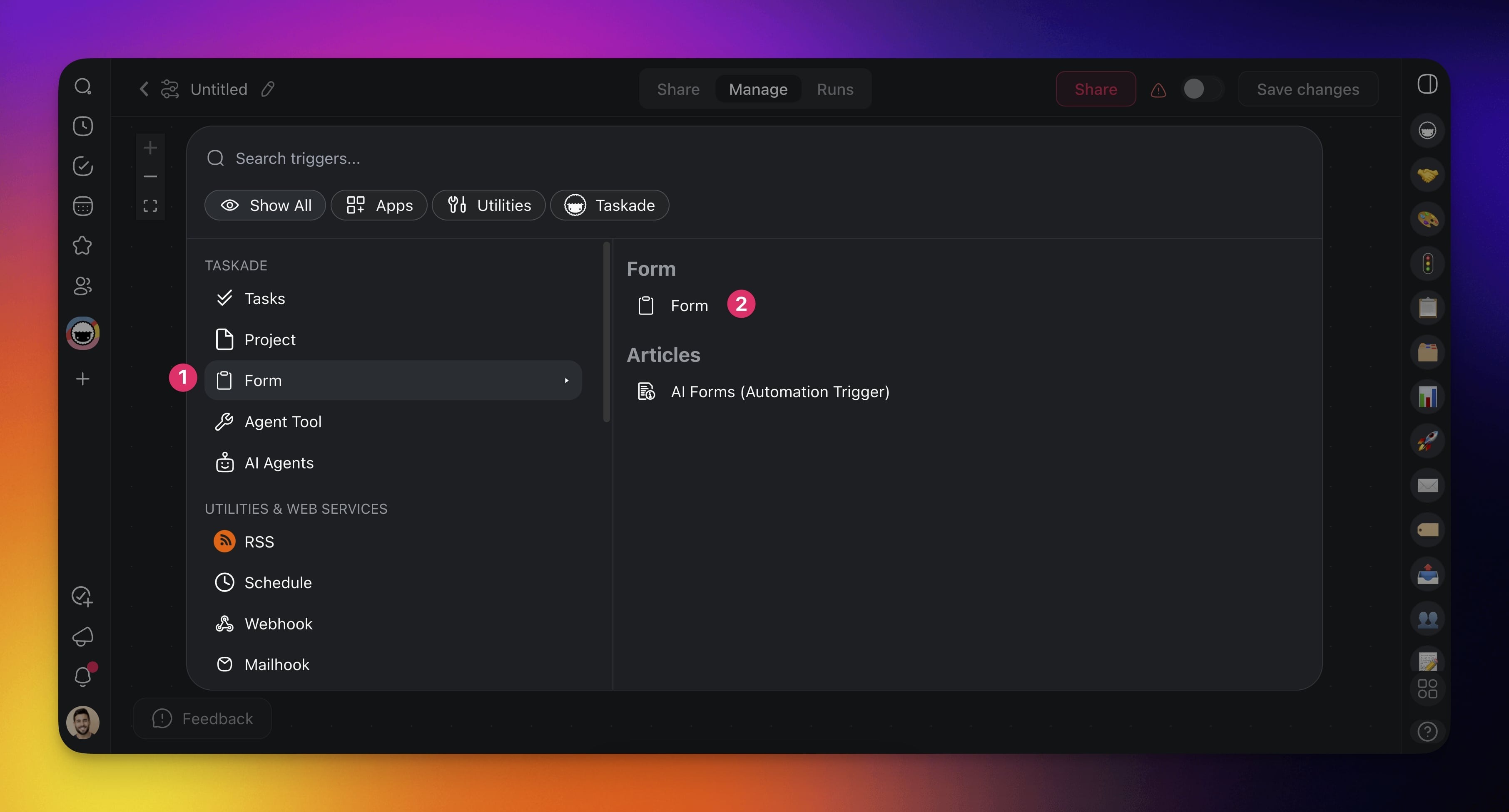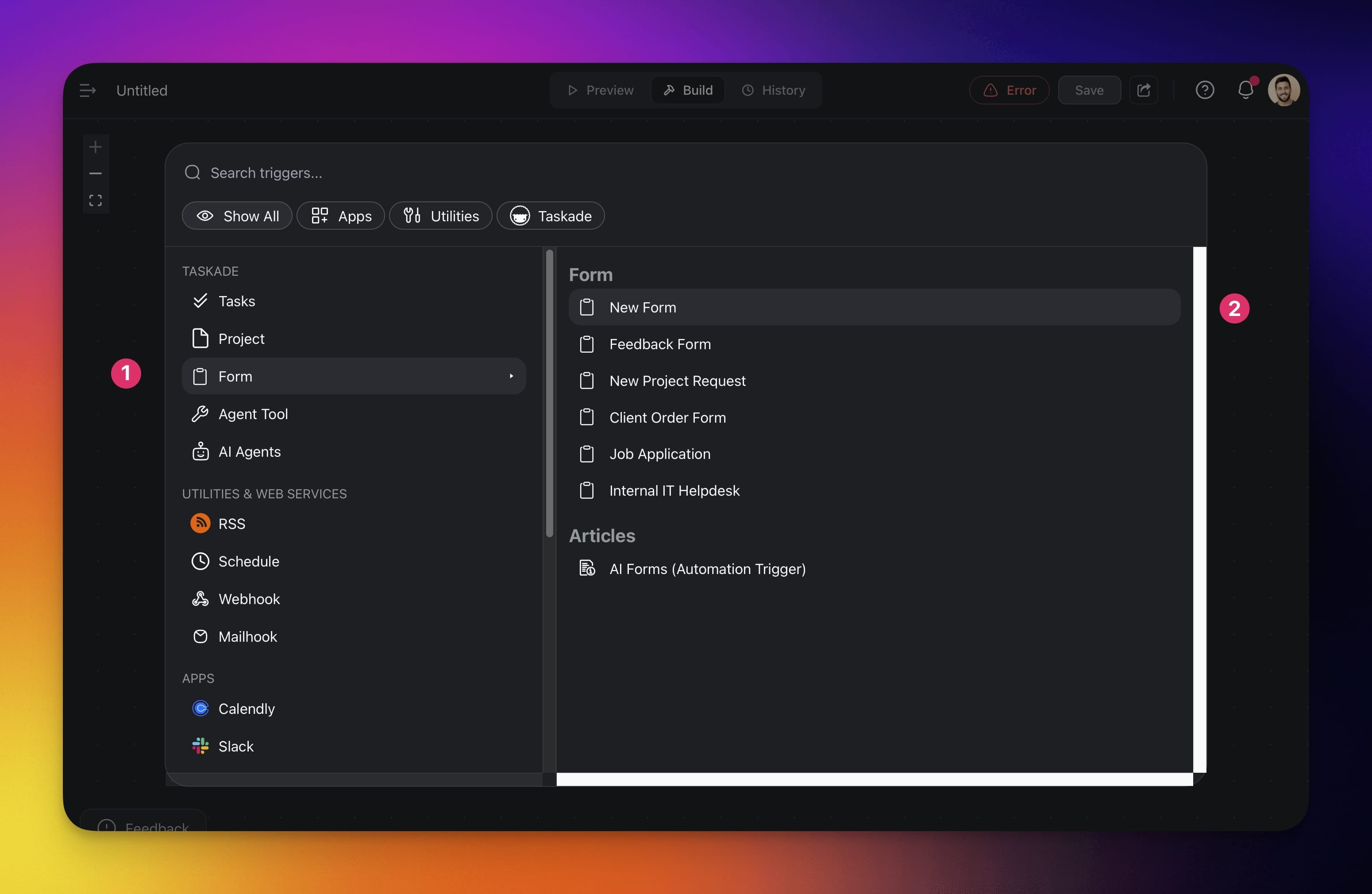 - Click โ Add Triggerโ go to the Forms category.