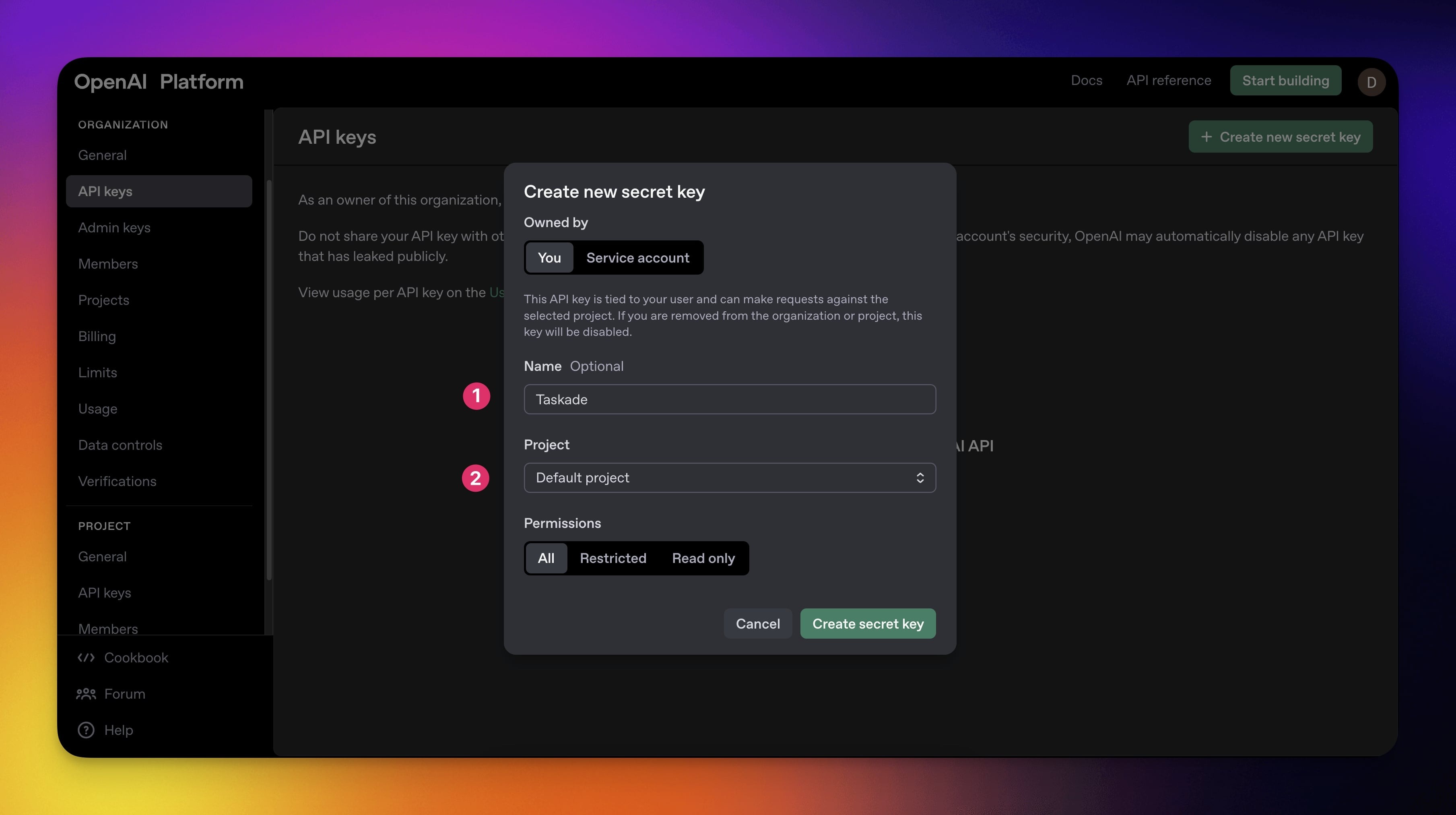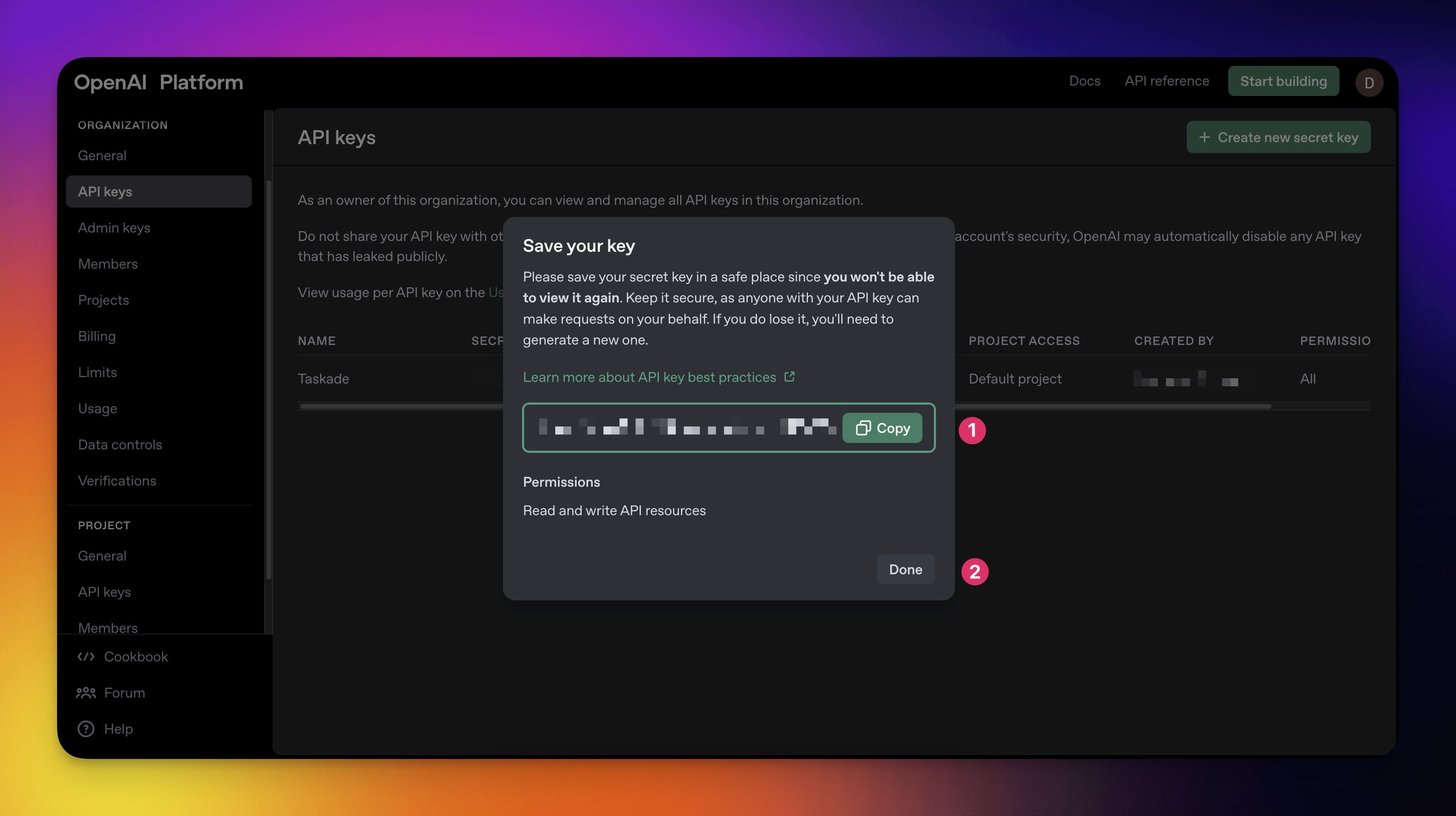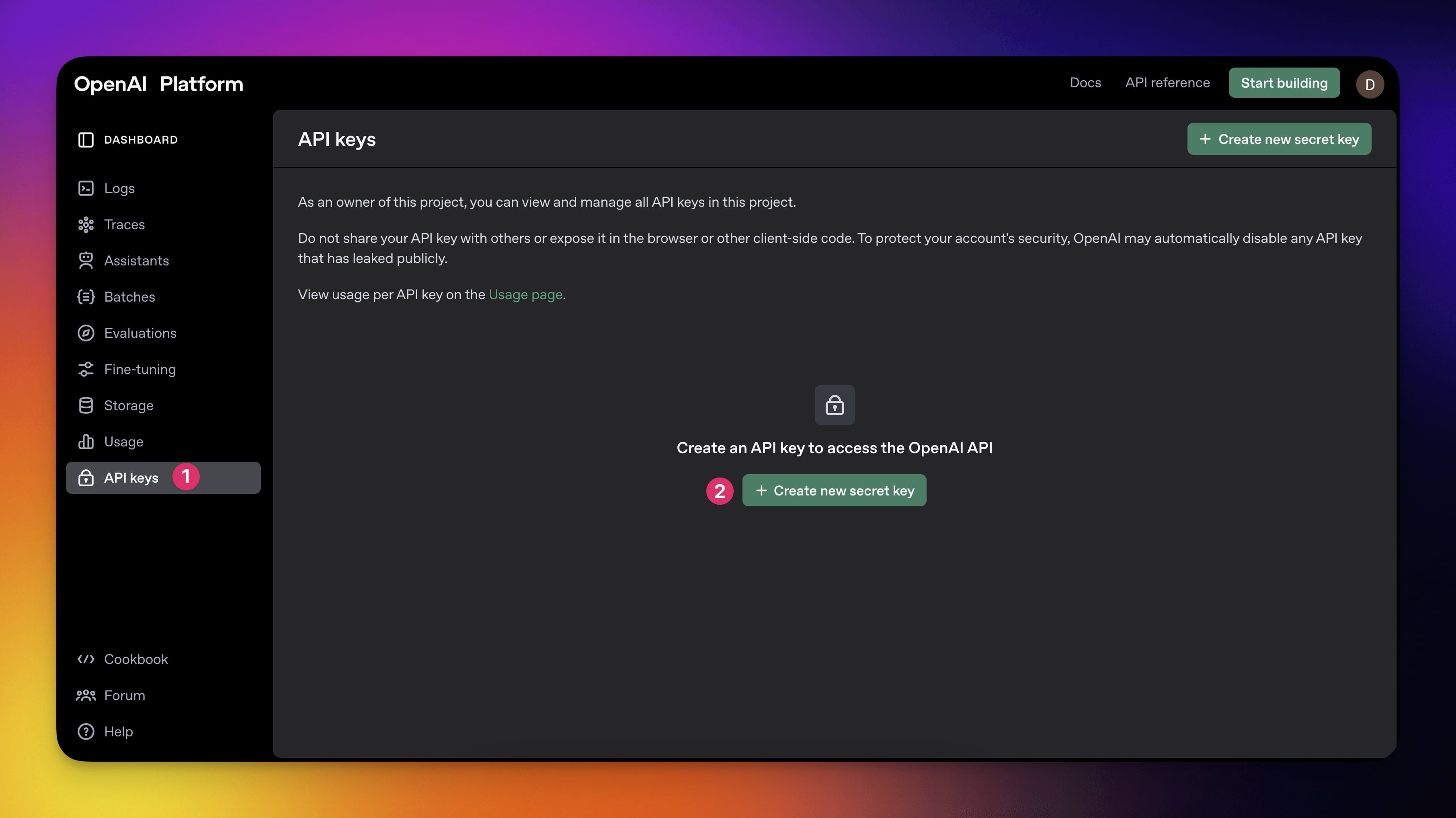 - Visit your OpenAI dashboard: https://platform.openai.com/api-keys.