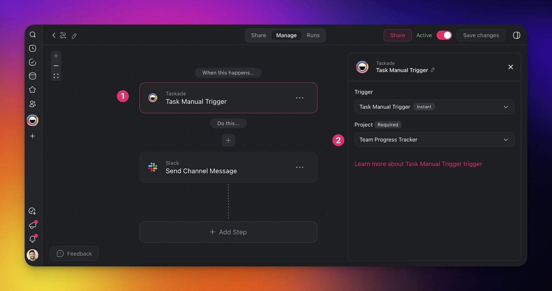 The Task Manual Trigger allows you to trigger automations from within projects.