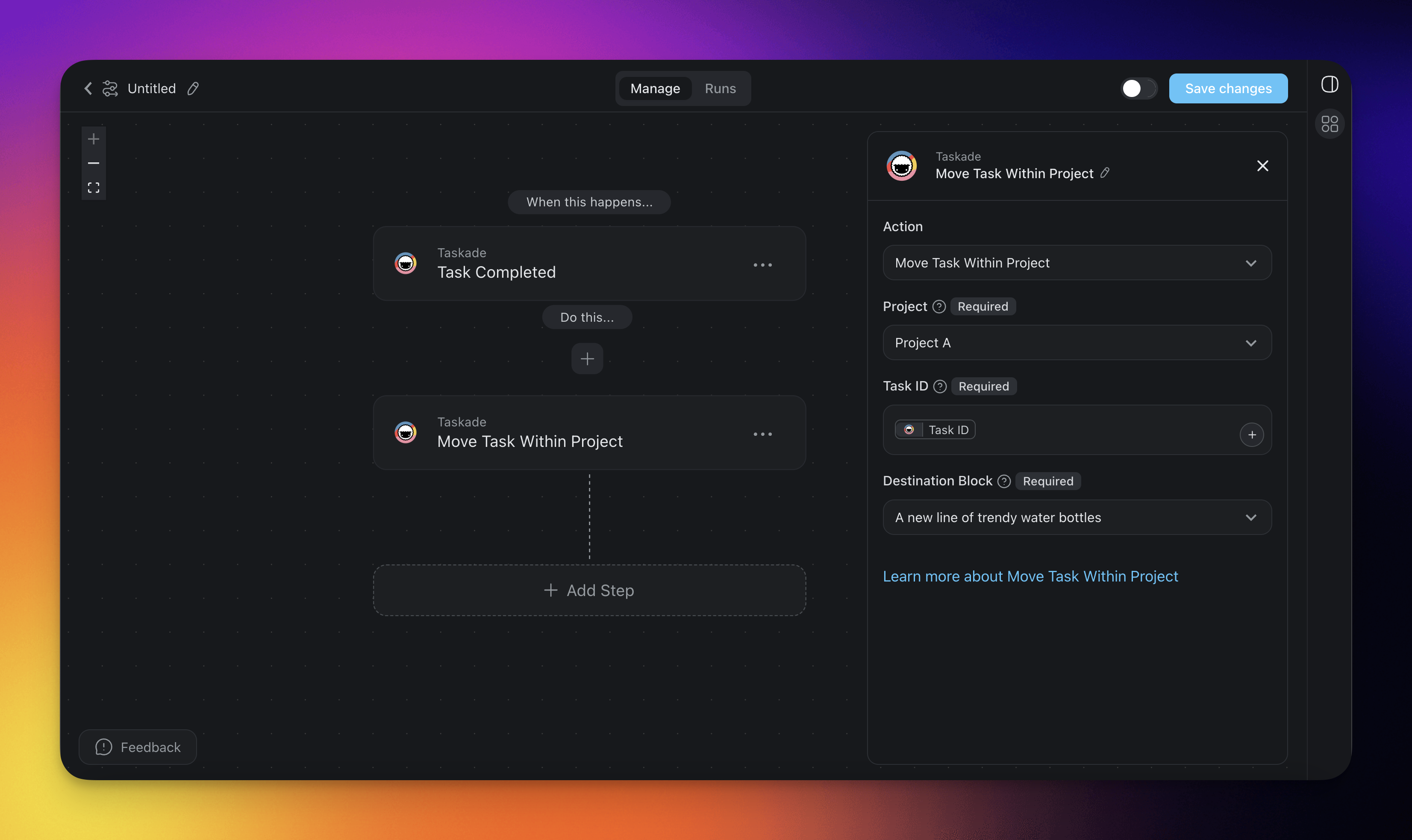 - Click ➕ Add Step and choose the Move Task Within Project action.