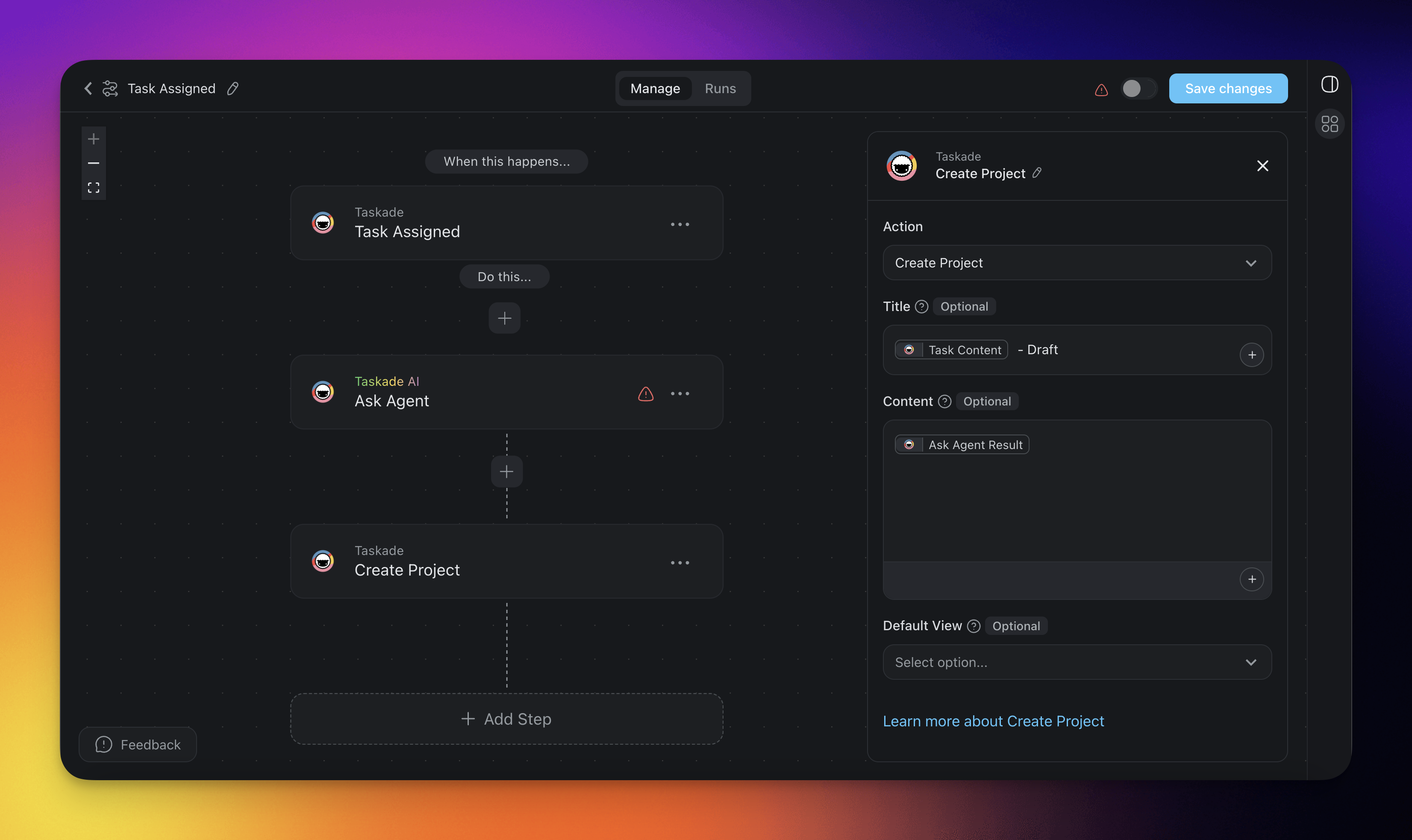 | Create Actionables | Automatically generate a new project outlining possible action items when a task is assigned to a user, ensuring all potential next steps are clearly defined and organized. This helps streamline workflows and ensures nothing is overlooked in the task execution process. |